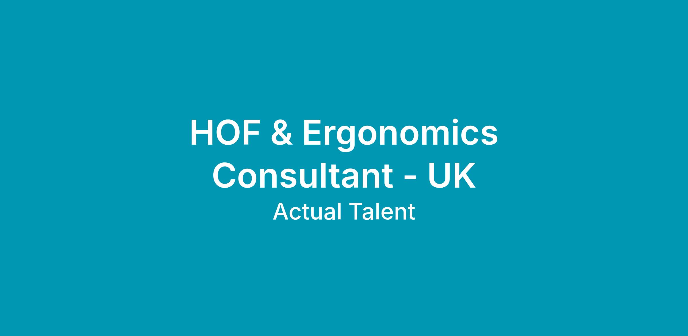 We are recruiting a Human and Organizational Factors (HOF) and Ergonomist Consultant to support aerospace factory projects in Wales.