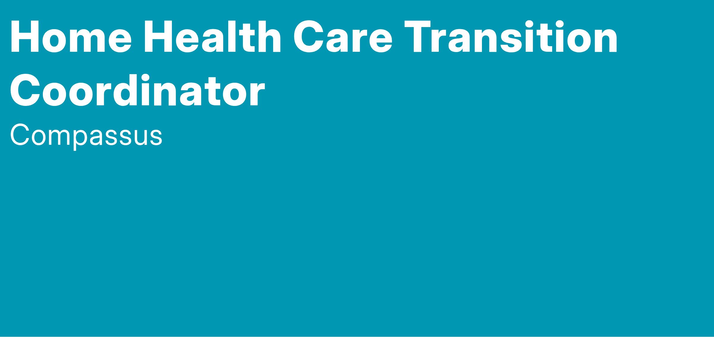 The Home Health Care Transition Coordinator is responsible for modeling the Compassus values of Compassion, Integrity, Excellence, Teamwork, and Innovation and for promoting the Compassus philosophy, using the 6 Pillars of Success as the foundation. S/he is responsible for upholding the Code of Ethical Conduct and for promoting positive working relationships within the company, among all departments, and all external stakeholders. The Home Health Care Transition Coordinator serves as a trusted resource for the physician and hospital case managers and communicates with referral sources. S/he conducts skilled conversations with physicians, patients, families, and healthcare providers. S/he maintains an understanding of hospital and post-acute healthcare systems. The Home Health Care Transition Coordinator navigates getting patients into the right care at the right time.