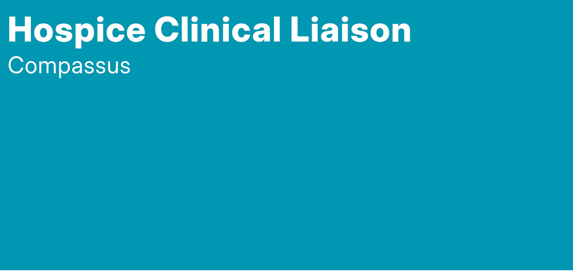 The Hospice Clinical Liaison is responsible for modeling the Compassus values of Compassion, Integrity, Excellence, Teamwork, and Innovation and for promoting the Compassus philosophy, using the 6 Pillars of Success as the foundation. S/he is responsible for upholding the Code of Ethical Conduct and for promoting positive working relationships within the company, among all departments, and all external stakeholders. The Hospice Clinical Liaison is responsible for assisting referral sources in identifying patients with care needs that match the services provided by hospice.