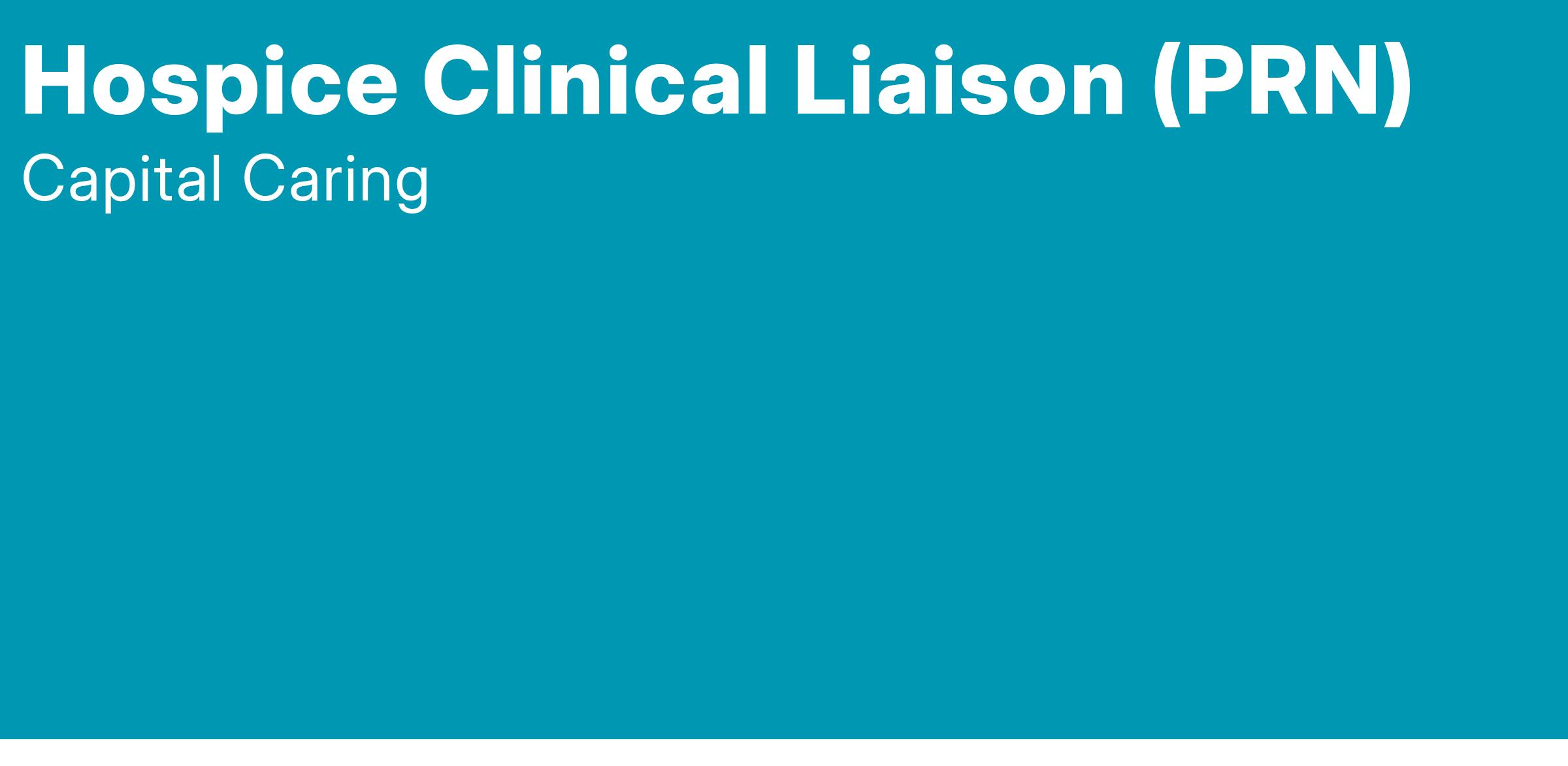 The Hospice Clinical Liaison initiates the plan of care, discharge plan and communicates with the interdisciplinary team regarding patient goals and treatment plans. The Clinical Liaison makes nursing assessments, judgments and treatment decisions based on patient needs and wishes. He/she promotes Capital Caring and Capital Palliative Care Consultants programs to acute care facilities through collaborative relationships with the facility by providing opportunities for professional development and community education. May be asked to rotate to other regions/departments
