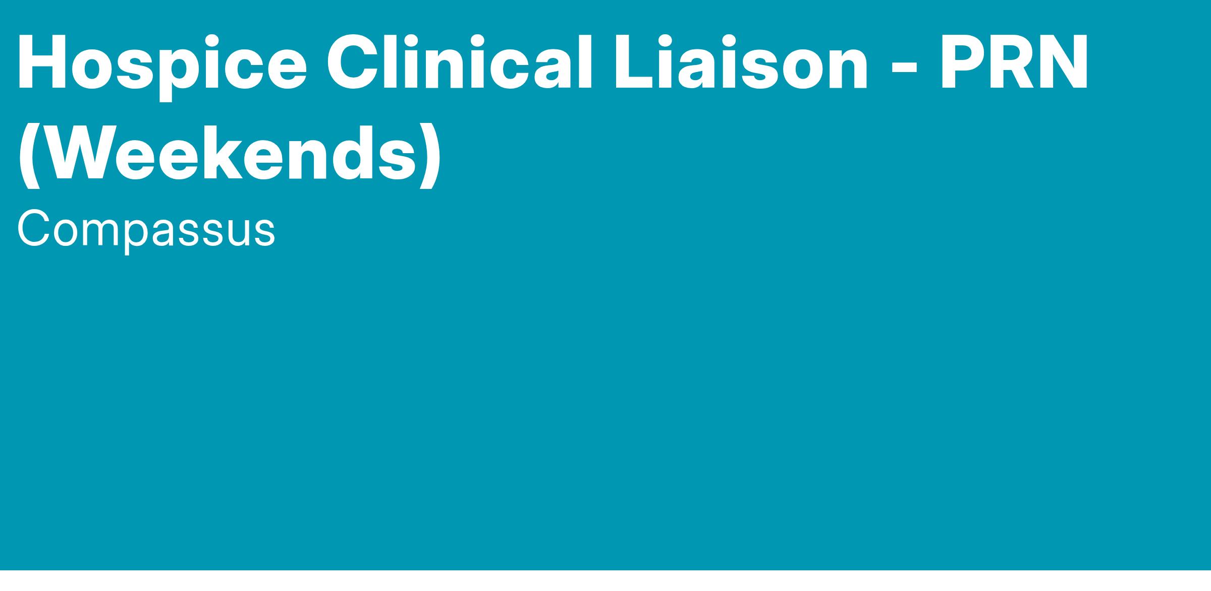 The Hospice Clinical Liaison - PRN is responsible for modeling the Compassus values of Compassion, Integrity, Excellence, Teamwork, and Innovation and for promoting the Compassus philosophy, using the 6 Pillars of Success as the foundation. S/he is responsible for upholding the Code of Ethical Conduct and for promoting positive working relationships within the company, among all departments, and all external stakeholders. The Hospice Clinical Liaison - PRN is responsible for assisting referral sources in identifying patients with care needs that match the services provided by hospice.