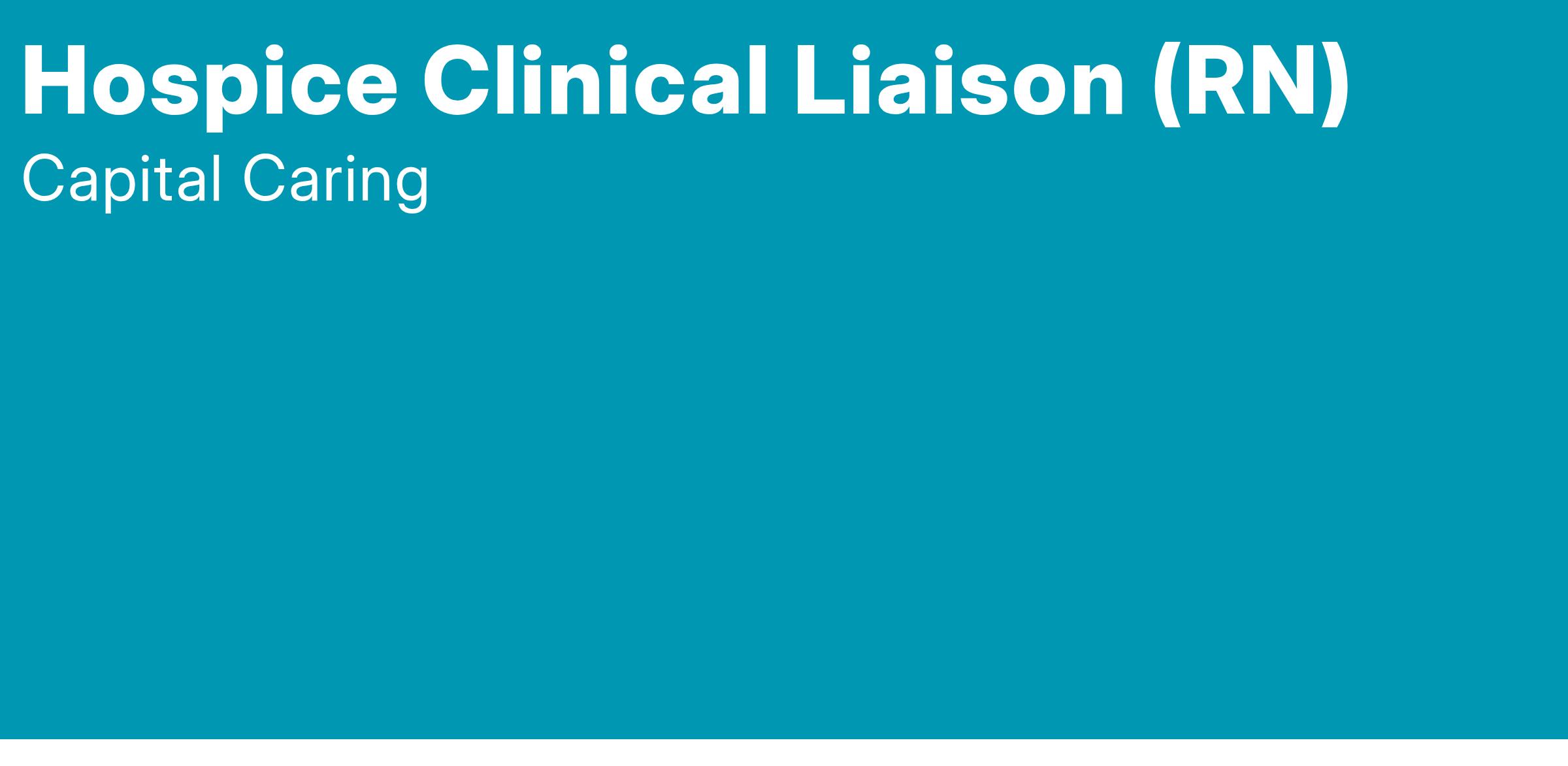 The Hospice Clinical Liaison initiates the plan of care, discharge plan and communicates with the interdisciplinary team regarding patient goals and treatment plans. The Clinical Liaison makes nursing assessments, judgments and treatment decisions based on patient needs and wishes. He/she promotes Capital Caring and Capital Palliative Care Consultants programs to acute care facilities through collaborative relationships with the facility by providing opportunities for professional development and community education. May be asked to rotate to other regions/departments