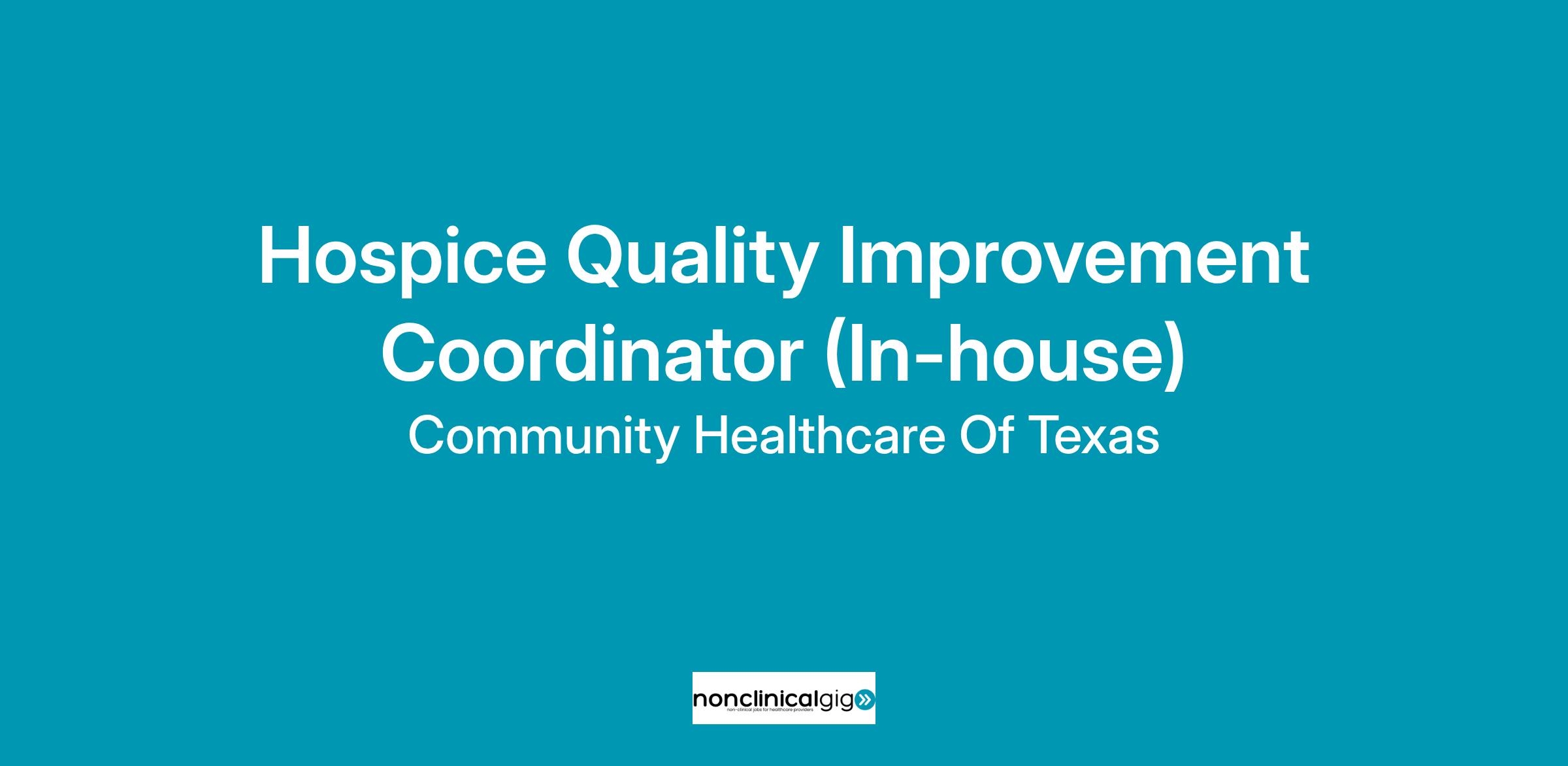 Community Healthcare of Texas is currently recruiting for an Hospice Quality Improvement Coordinator (In-house)