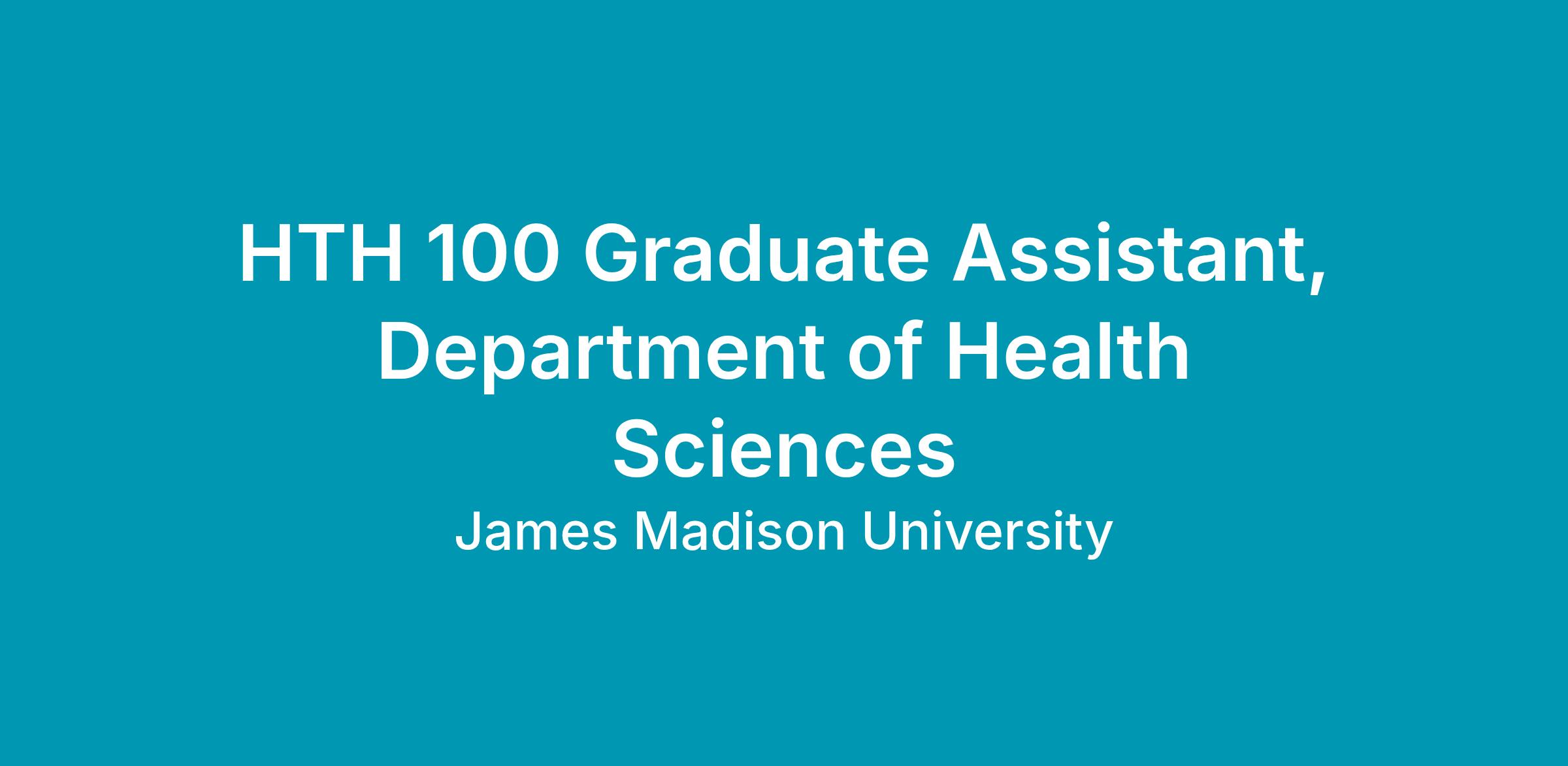 Working Title: HTH 100 Graduate Assistant, Department of Health Sciences