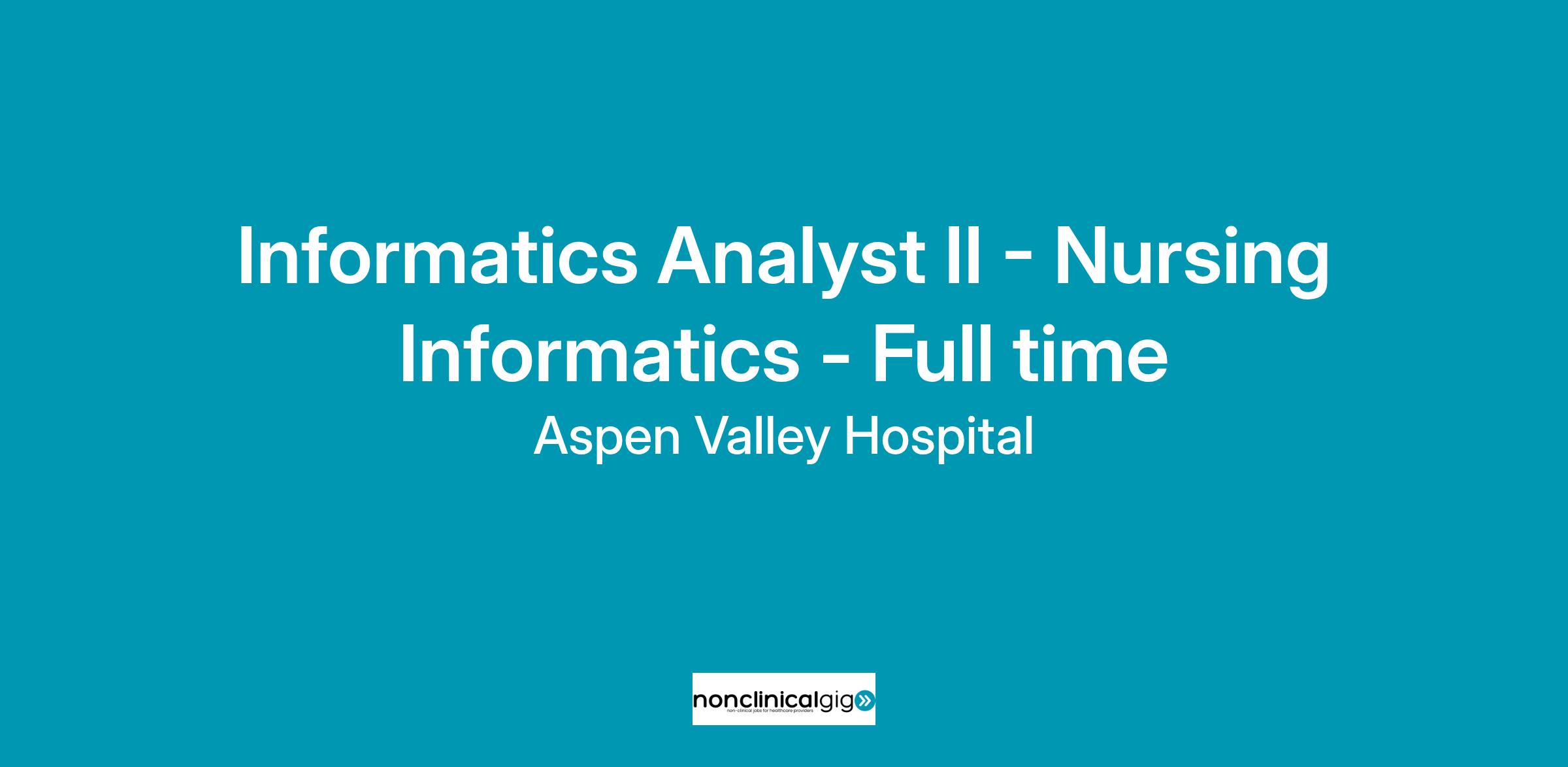 The Informatics Analyst develops and helps to maintain the electronic health system, software applications and databases for Aspen Valley Hospital. Develops an understanding of the application functionality, reporting capabilities, interfacing and integration associated with the applications assigned.What to Love: