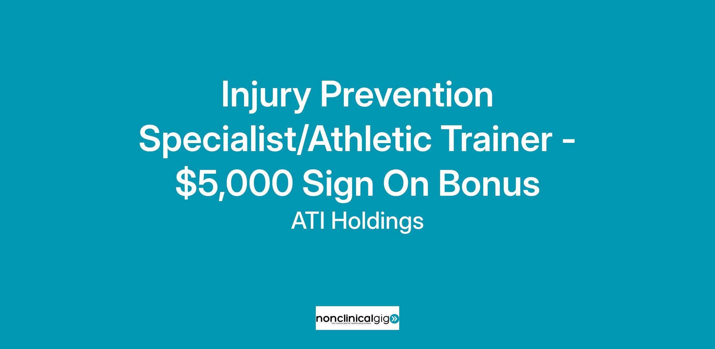 Injury Prevention Specialist/Athletic Trainer - $5,000 Sign On Bonus