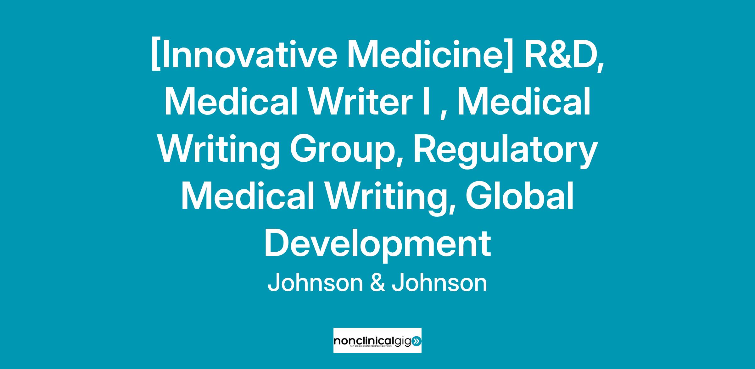 Johnson & Johnson Innovative Medicine is recruiting for a Medical Writer I (P4), located at J&J's Tokyo office.