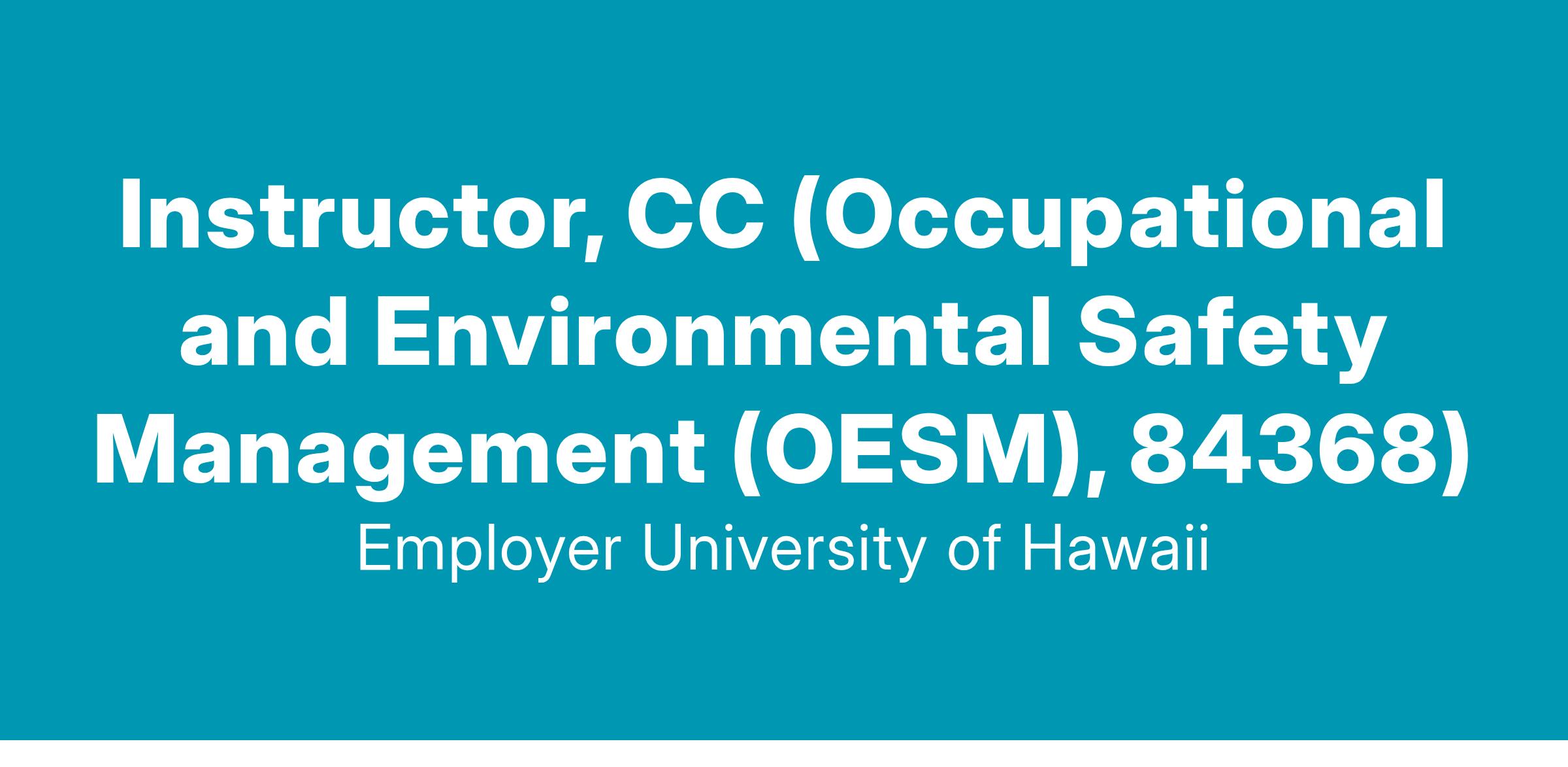 Title: Instructor, CC (Occupational and Environmental Safety Management (OESM))