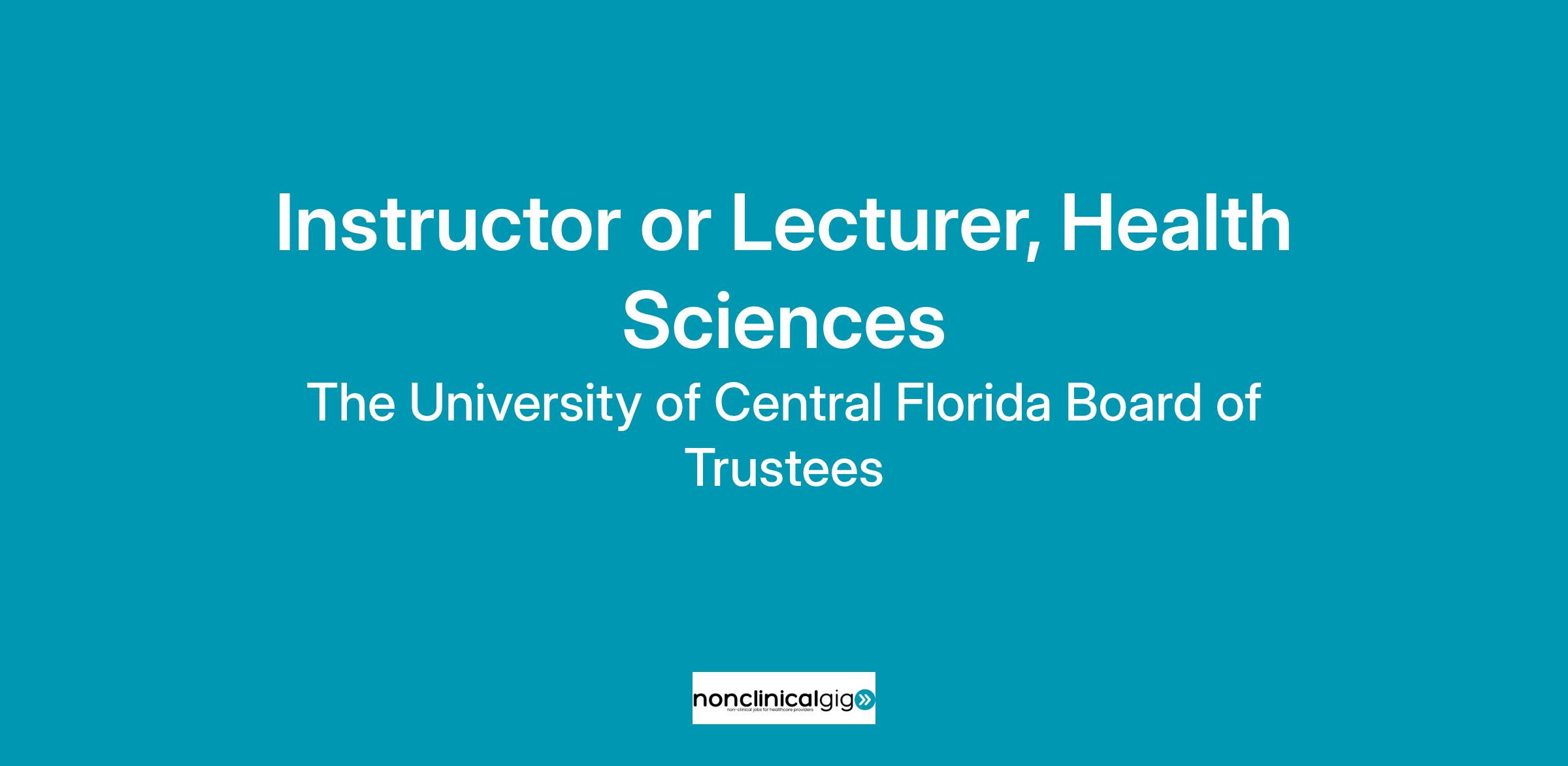 The Department of Health Sciences is home to 19 full-time faculty and approximately 3000 undergraduate students in the major and about 500 students in the minor. We offer an undergraduate degree in Health Sciences with two tracks – Pre-Clinical and Health Promotion and a Master of Science degree in Health Promotion and Behavioral Science. Development of a Master of Science in Nutrition Science and Dietetics is a future goal pending university approval. The Department of Health Sciences is recognized for its high-quality educational offerings and growing research impact. For more information about the Department of Health Sciences, visit our website at: UCF Department of Health Sciences - College of Health Professions and Sciences.