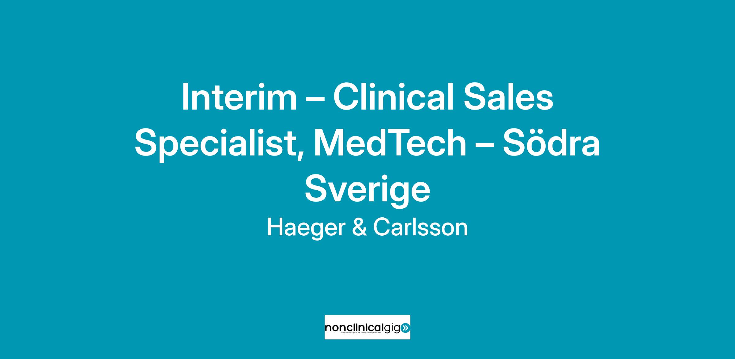 Haeger & Carlsson söker dig som har minst 3 års erfarenhet av att arbeta i säljande roller på ett medicintekniskt bolag. Du kommer i detta konsultuppdrag utbilda och träna HCP-personal på sjukhuskliniker gällande vår uppdragsgivares nylanserade medicintekniska produkt. Vi ser därav en stark önskan att man har en sjuksköterskebakgrund eller liknande för detta konsultuppdrag.