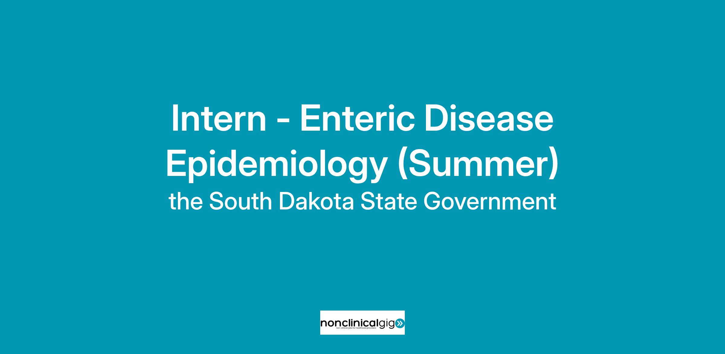 Session: Summer (May - August) Position Title:Intern - Enteric Disease Epidemiology Intern Hiring Manager: Nathan Wilen Agency:Department of Health - Division of Disease Prevention and Control Location: Pierre or Sioux Falls Minimum Salary: $22.82
