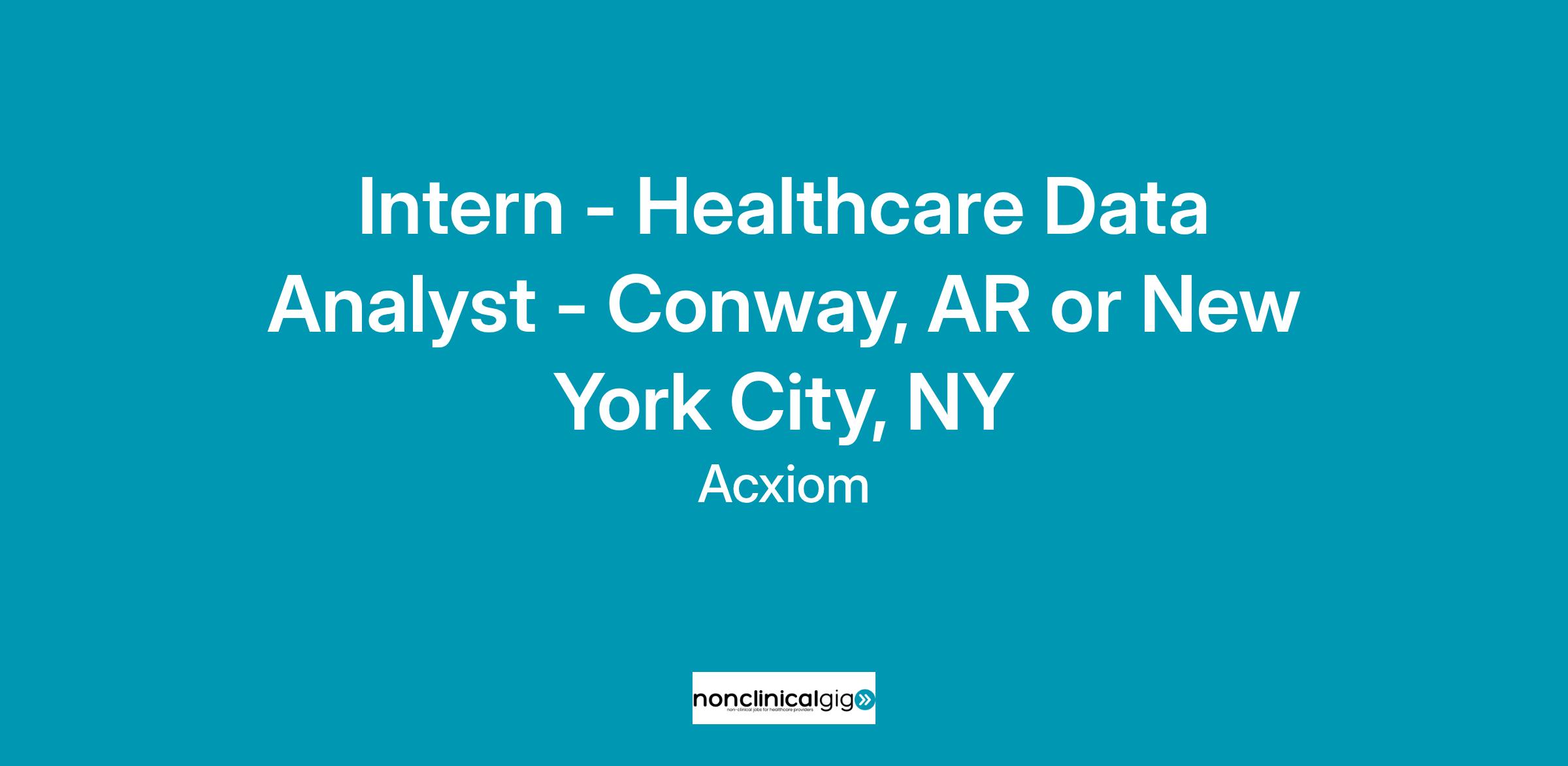 Acxiom Healthcare Data Analyst Intern will assist in analyzing healthcare data, generating insights, and supporting our data driven advertising initiatives. You will work with large datasets, build reports, and collaborate with cross-functional teams to optimize healthcare marketing strategies. The intern will assist in developing and implementing project plans, meeting preparations, and follow-ups. The intern will also create and maintain data catalogs, taxonomies, and data spreadsheets for processing data throughout Acxiom and external data platforms.
