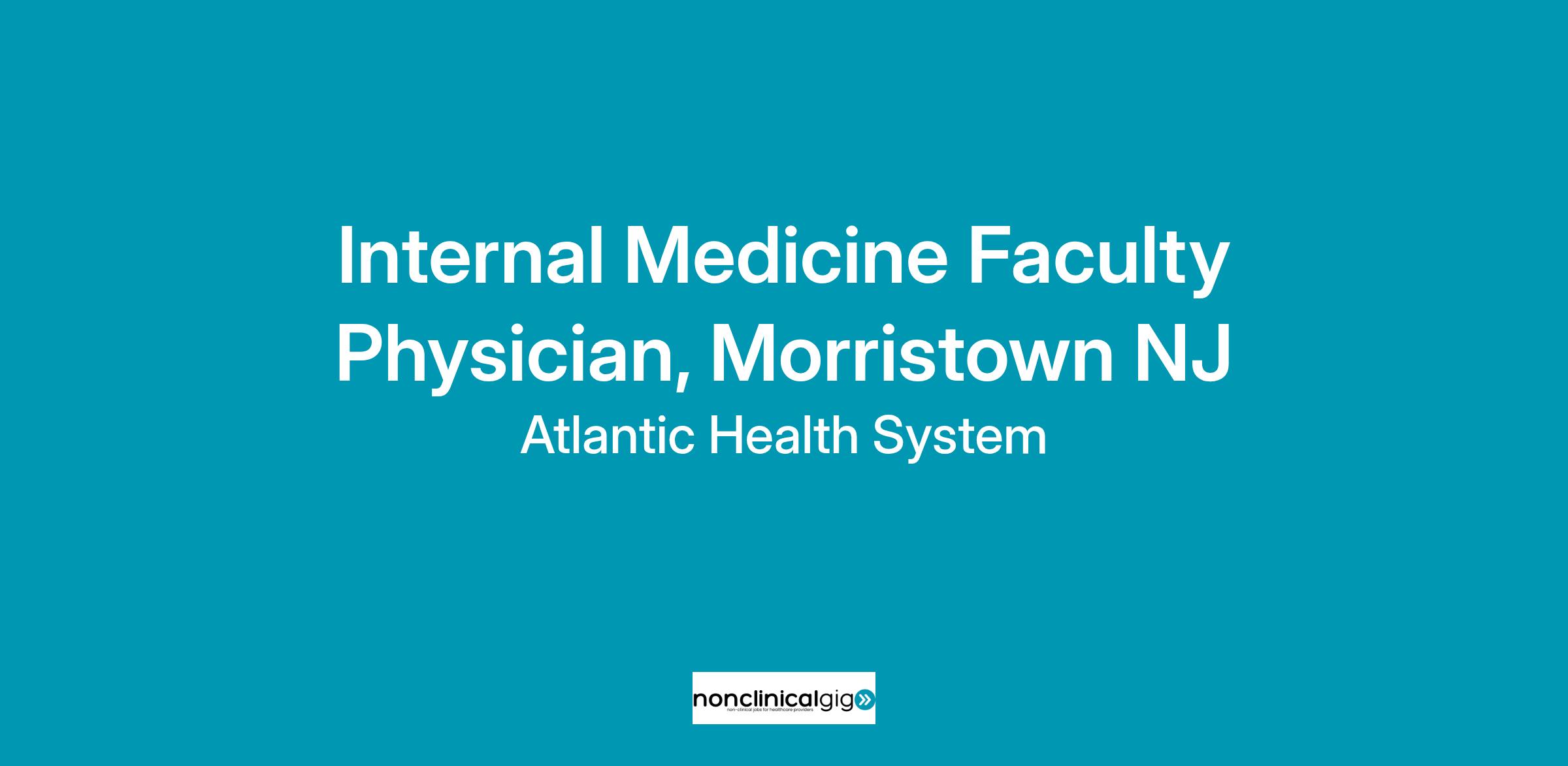 Atlantic Health, one of New Jersey’s premier non-profit healthcare networks, is seeking an Internal Medicine Faculty Physician to join a busy and collaborative outpatient practice in Morristown, NJ. This full-time position includes the opportunity for a dual role as both a practice based primary care physician and as a member of our faculty team focused on teaching and precepting internal medicine residents in a supportive and well-resourced environment.