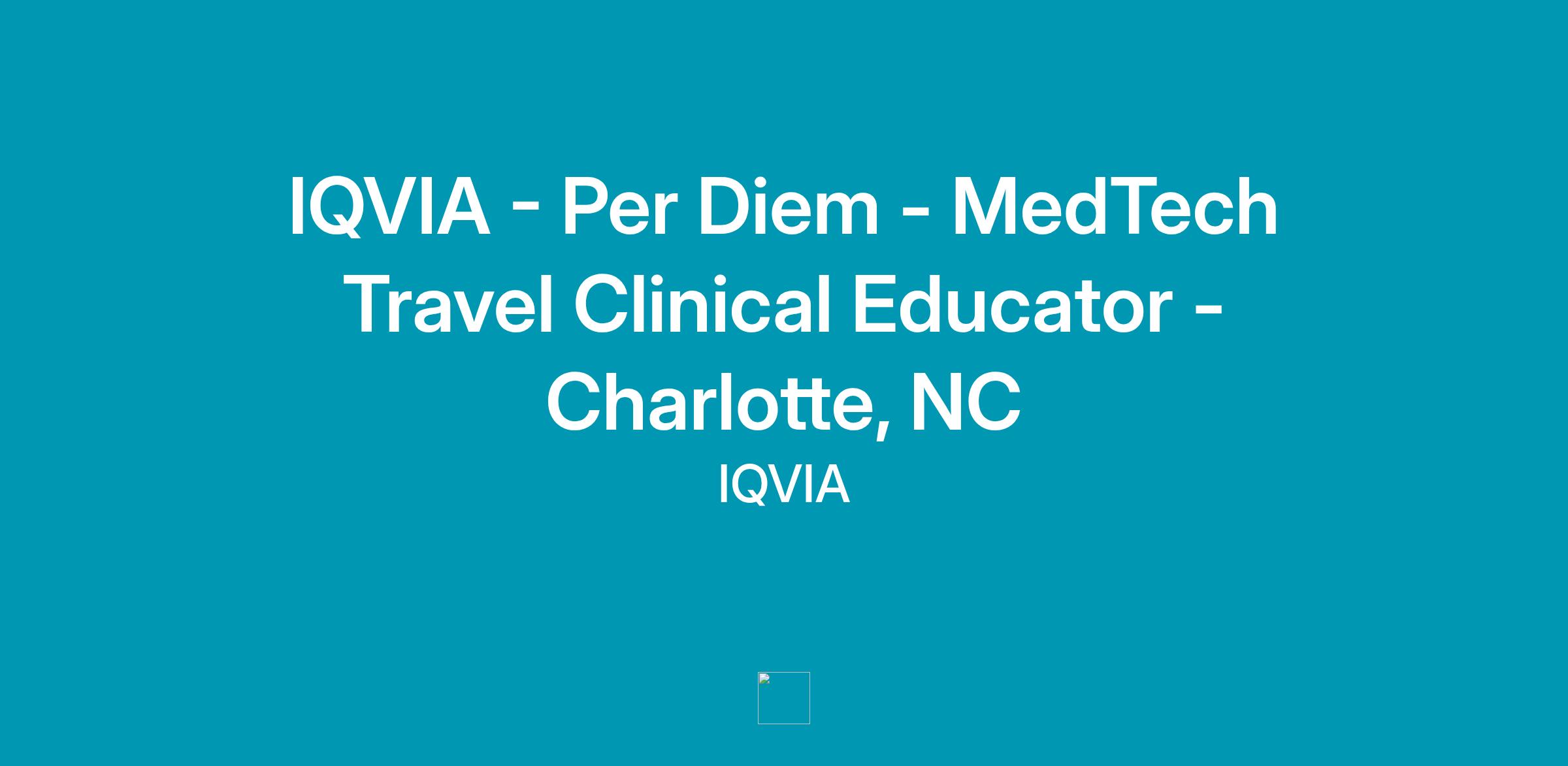 IQVIA - Per Diem - MedTech Travel Clinical Educator - Charlotte, NC