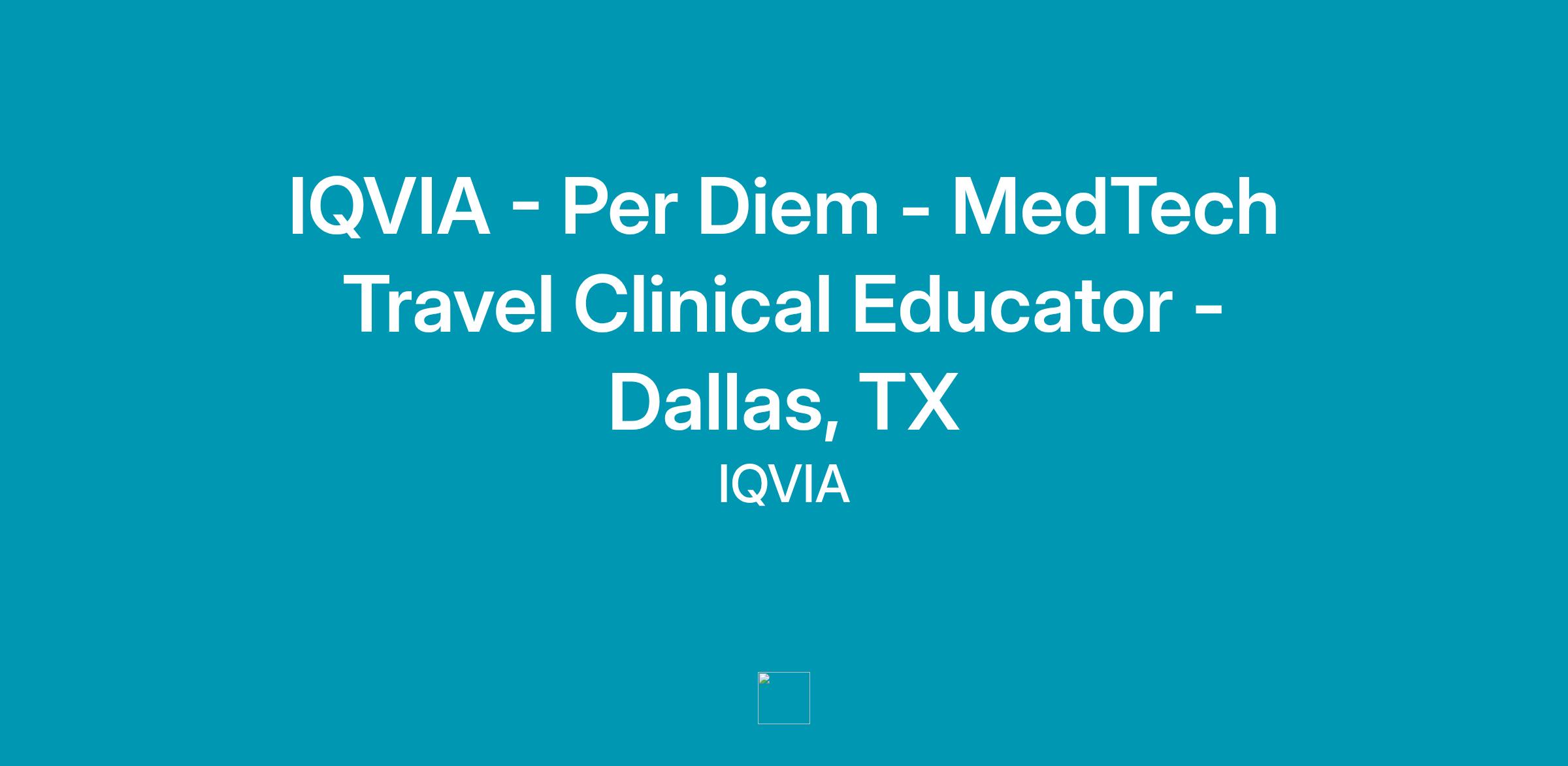 IQVIA - Per Diem - MedTech Travel Clinical Educator - Dallas, TX