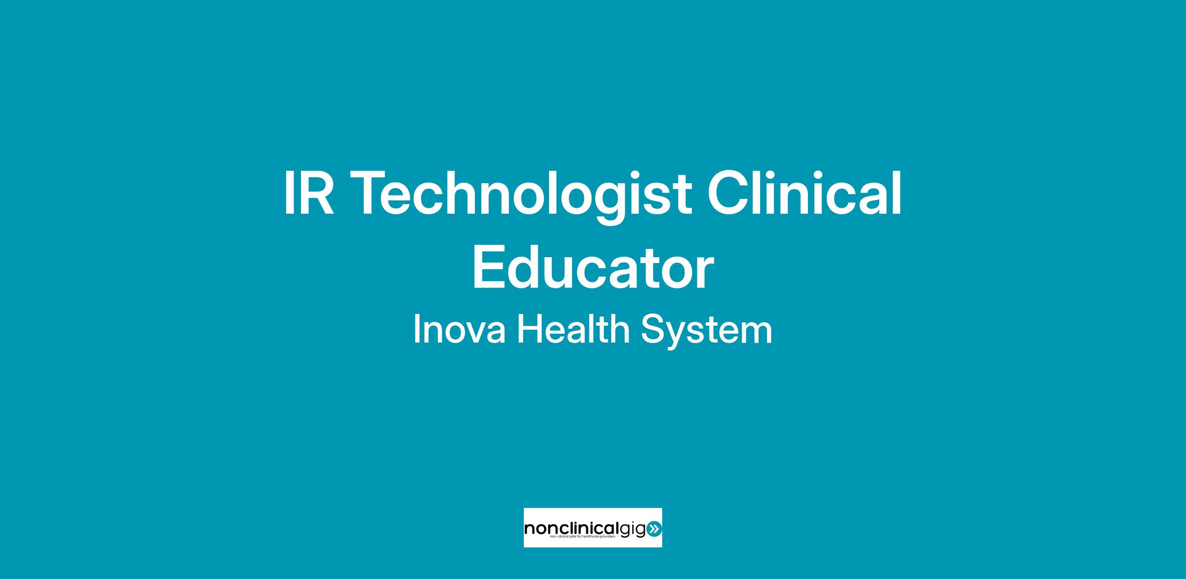 DescriptionInova Fairfax Medical Center |is looking for a dedicated IR Technologist Clinical Educator to join the team. This role will be full-time day shift. Sign-on bonus and relocation assistance eligible.