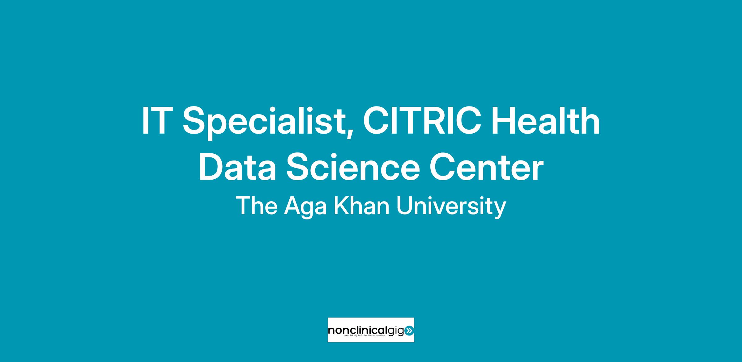 Aga Khan University invites applications for the position of IT Specialist, CITRIC Health Data Science Center.