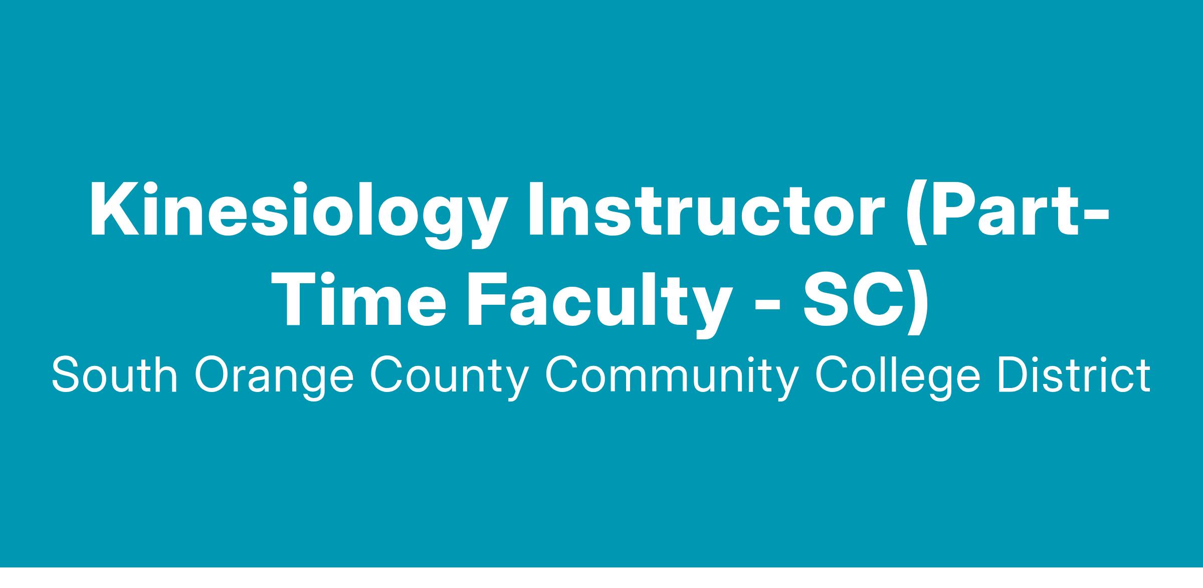 Saddleback College is seeking a part-time, non-tenure track Kinesiology Instructor to teach a variety of Health and/or Kinesiology courses within the Kinesiology & Athletics Division. Course assignments may include lecture, lab, or activity-based classes, and could be scheduled during the fall, spring, and summer terms, based on departmental needs and instructor availability.