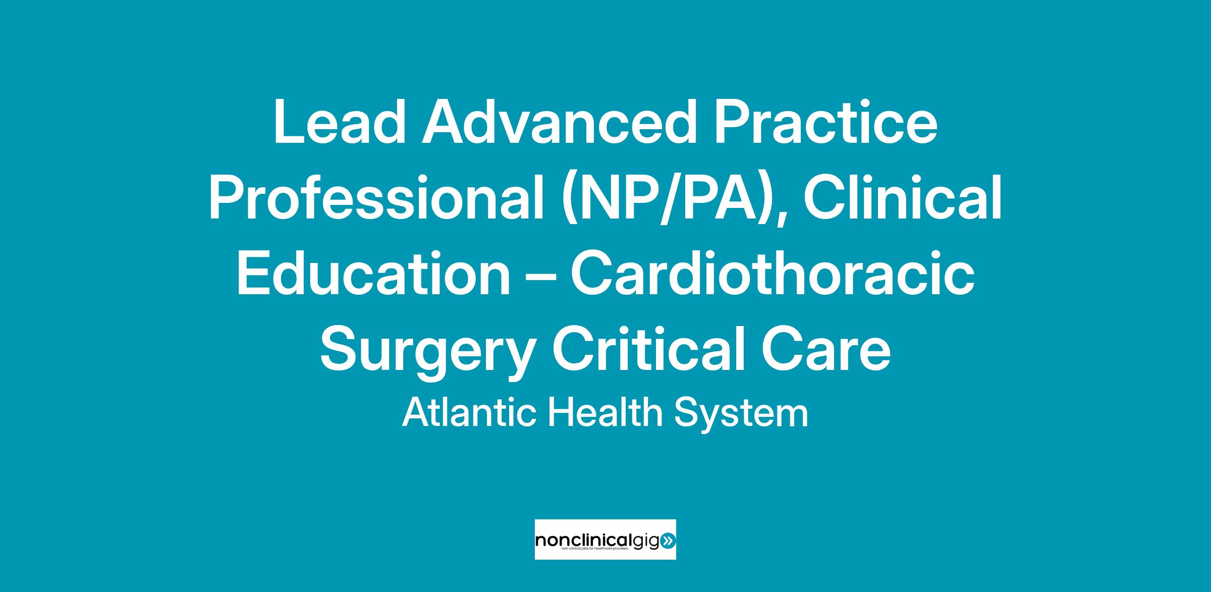 Atlantic Health, one of New Jersey’s largest non-profit healthcare networks, is seeking an experienced Advanced Practice Professional (Nurse Practitioner or Physician Assistant) to lead Clinical Education for Cardiothoracic Surgery Critical Care at Morristown Medical Center.