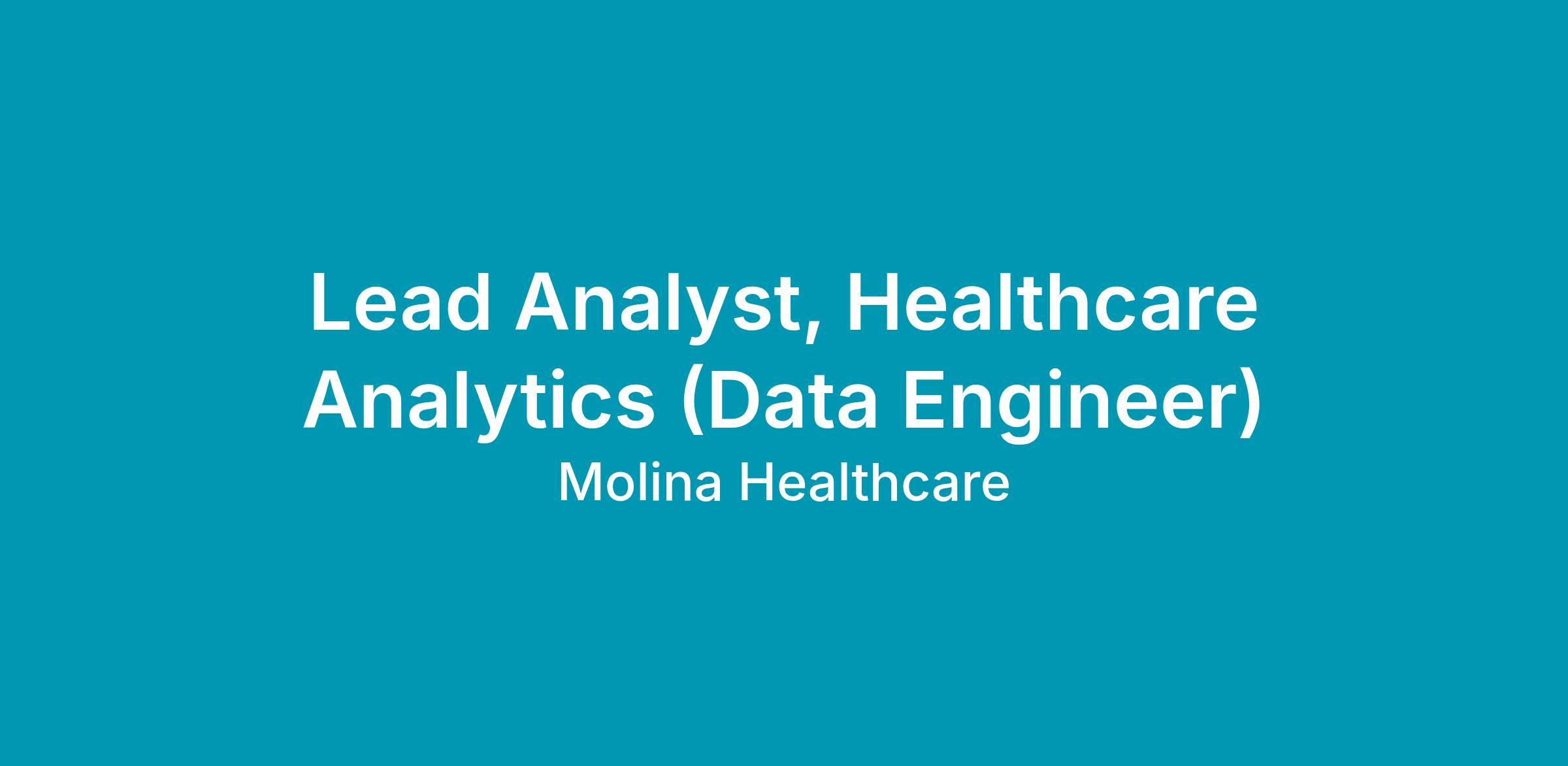 Lead Analyst, Healthcare Analytics (Data Engineer)