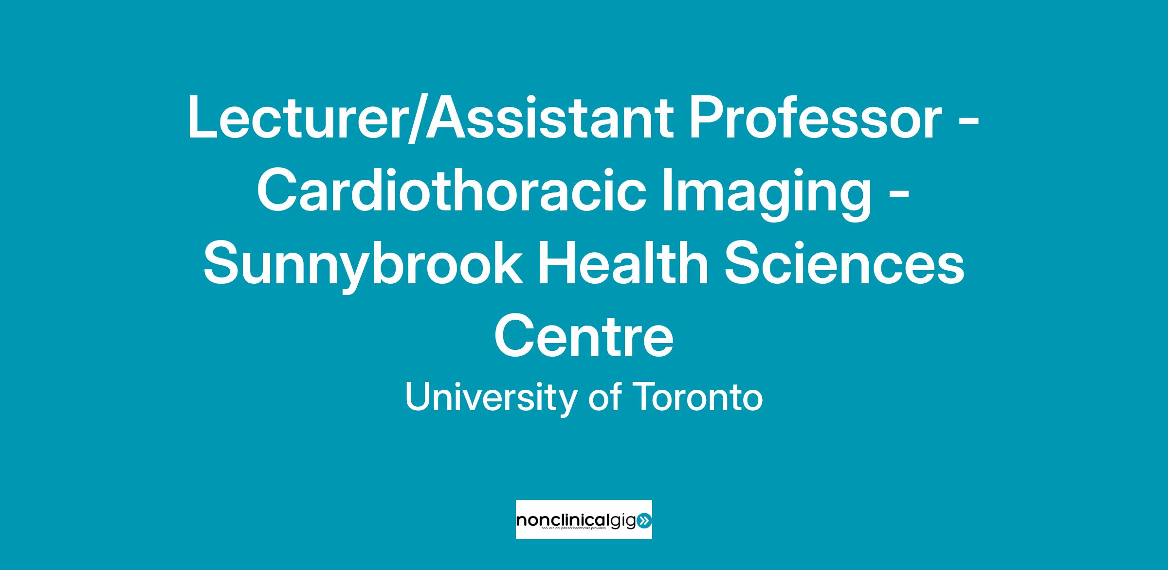 The Department of Medical Imaging at Sunnybrook Health Sciences Centre and the University of Toronto are recruiting a radiologist in Cardiothoracic Imaging. The successful candidate must be eligible for a full-time clinical appointment at the rank of Lecturer or Assistant Professor at the University of Toronto. The anticipated start date is May 1, 2026, or slightly thereafter.