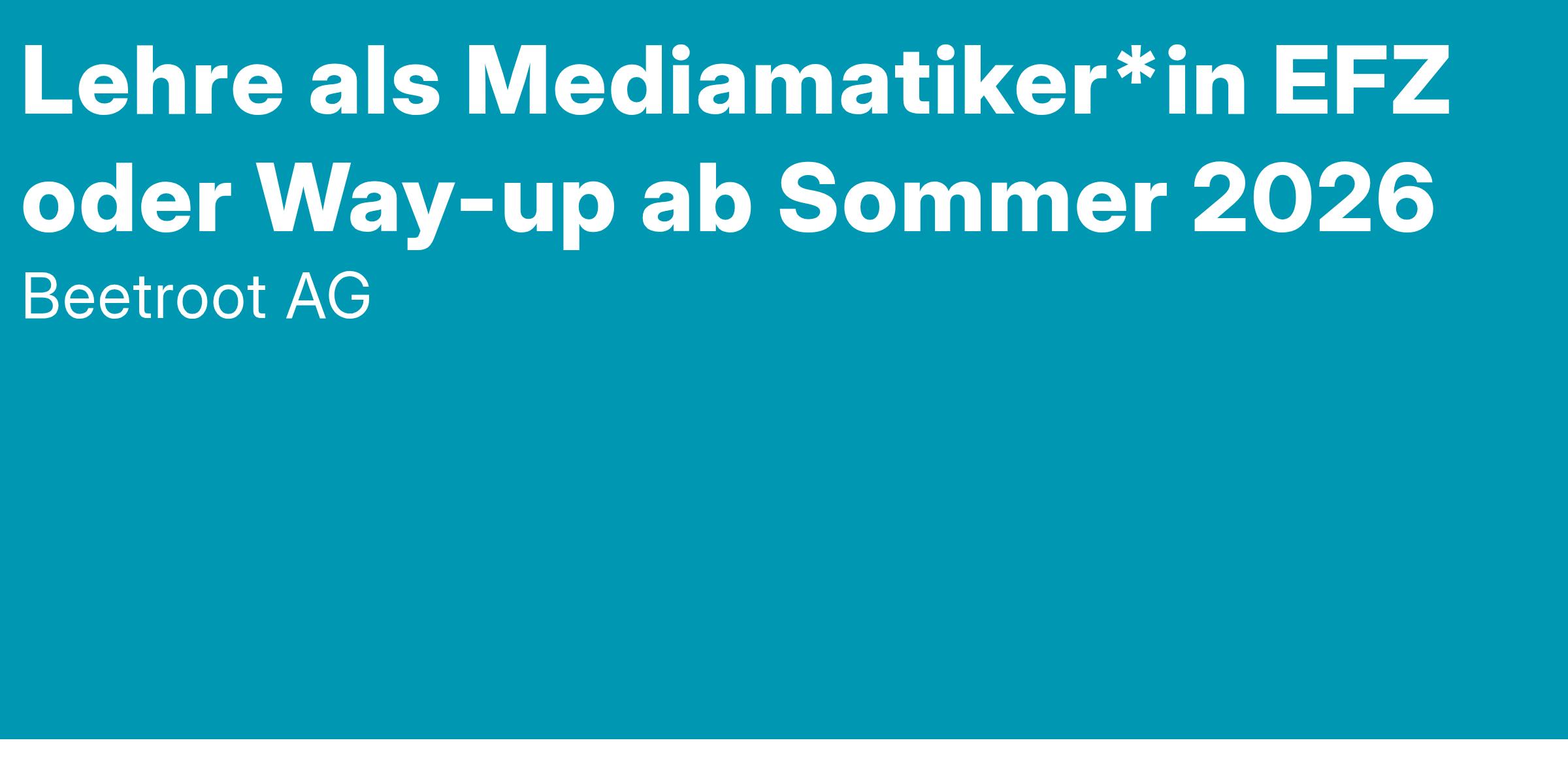Aber halt – bewirb dich nicht einfach mit deinem Zeugnis. Zeig uns zudem, was du draufhast. Überrasche uns mit einer kreativen Idee, die zu uns passt: Ob kurzes Video, Plakat, Social Media Post, Grafik oder etwas ganz anderes – du entscheidest, wie du dich vorstellen willst.