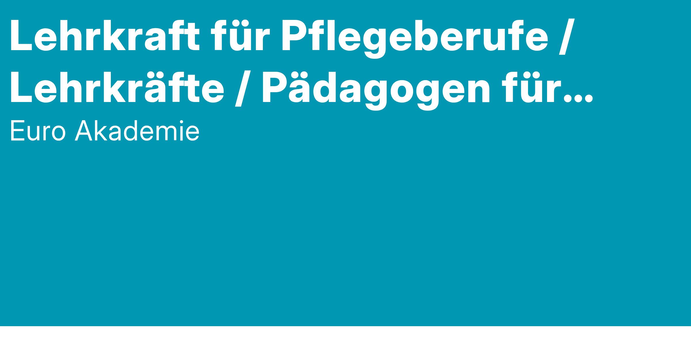 Wir wachsen weiter und suchen in Vollzeit oder Teilzeit zum nächstmöglichen Zeitpunkt für unsere Euro Akademie in Halle mit den Ausbildungslehrgängen Pflegehelfer*in, Pflegefachmann/frau