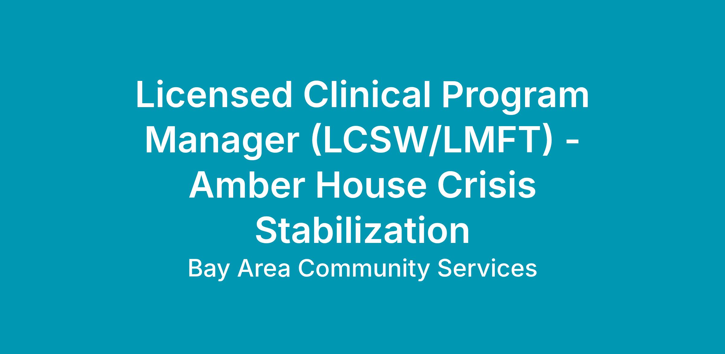 Amber House Crisis Stabilization Unit (CSU/CRT) Program Manager
