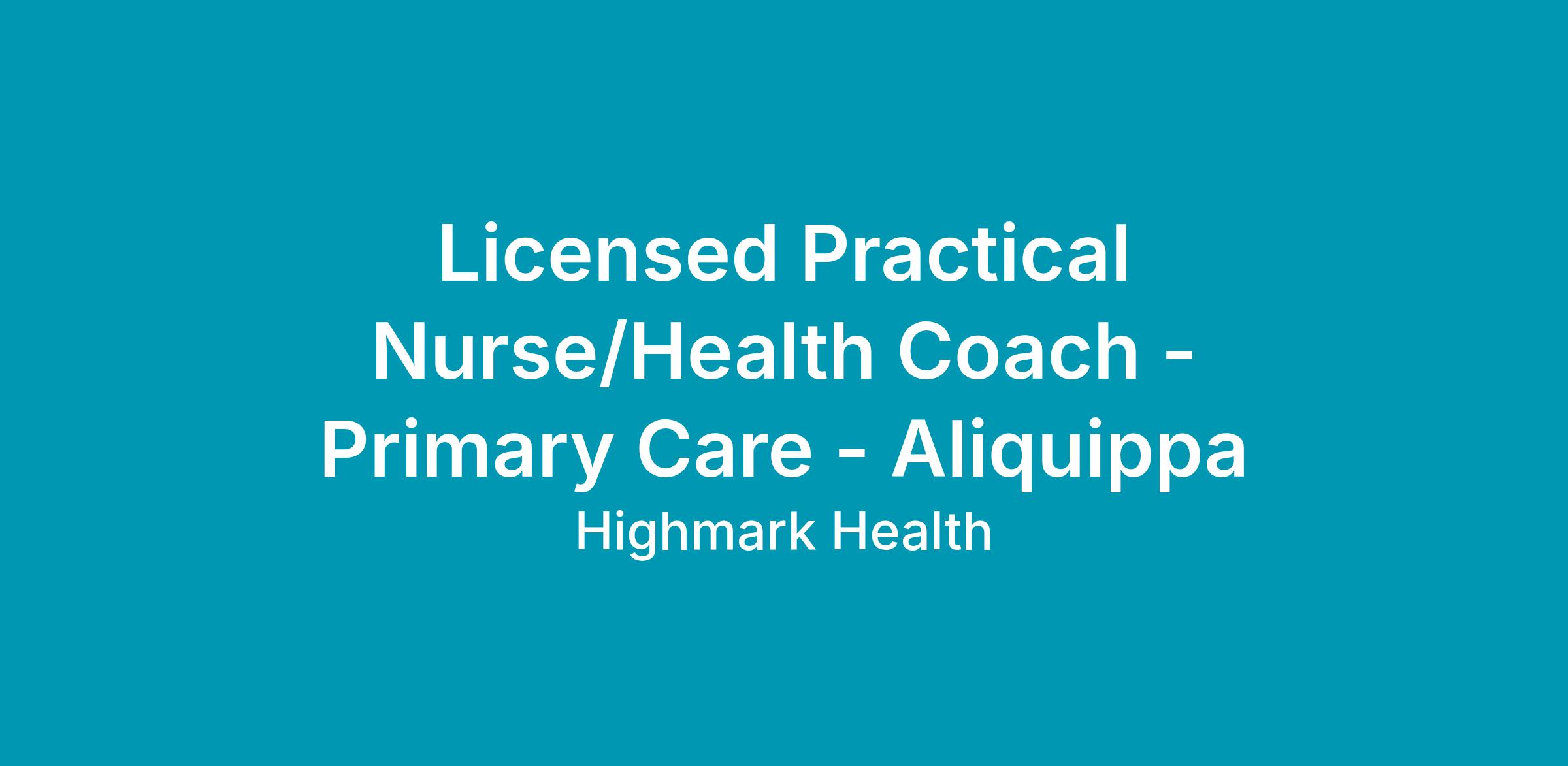 Licensed Practical Nurse/Health Coach - Primary Care - Aliquippa