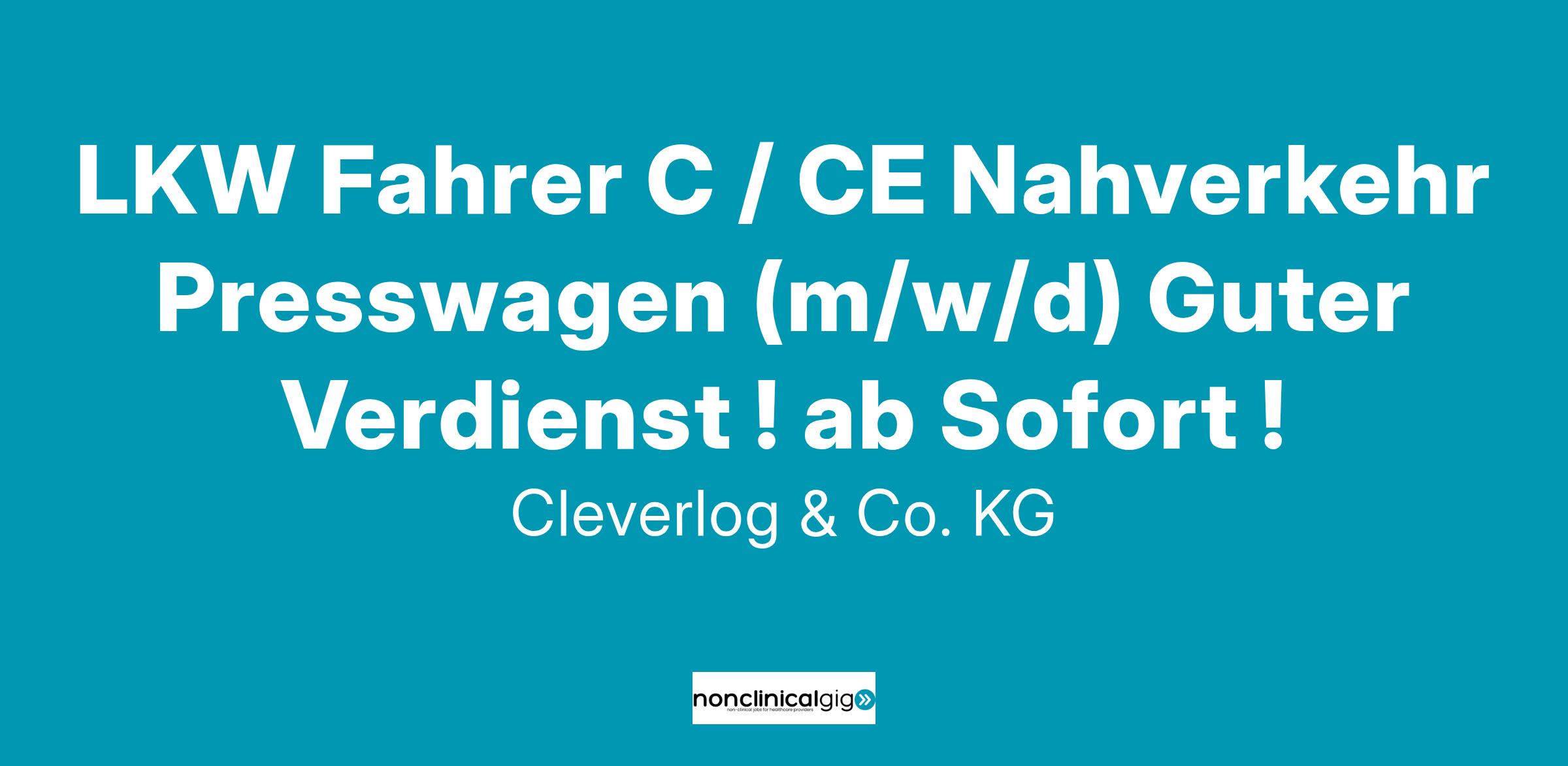 Wir suchen ab sofort einen LKW Fahrer C oder CE (m/w/d) für einen Presswagen im Nahverkehr für eine Tagestour.
