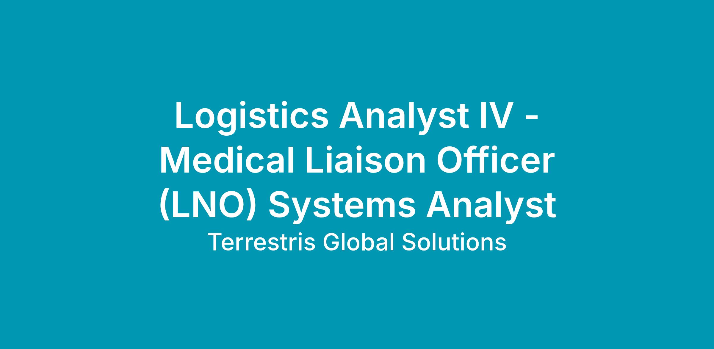 So, what will the Logistics Analyst IV - Medical Liaison Officer (LNO) Systems Analyst at Terrestris do?