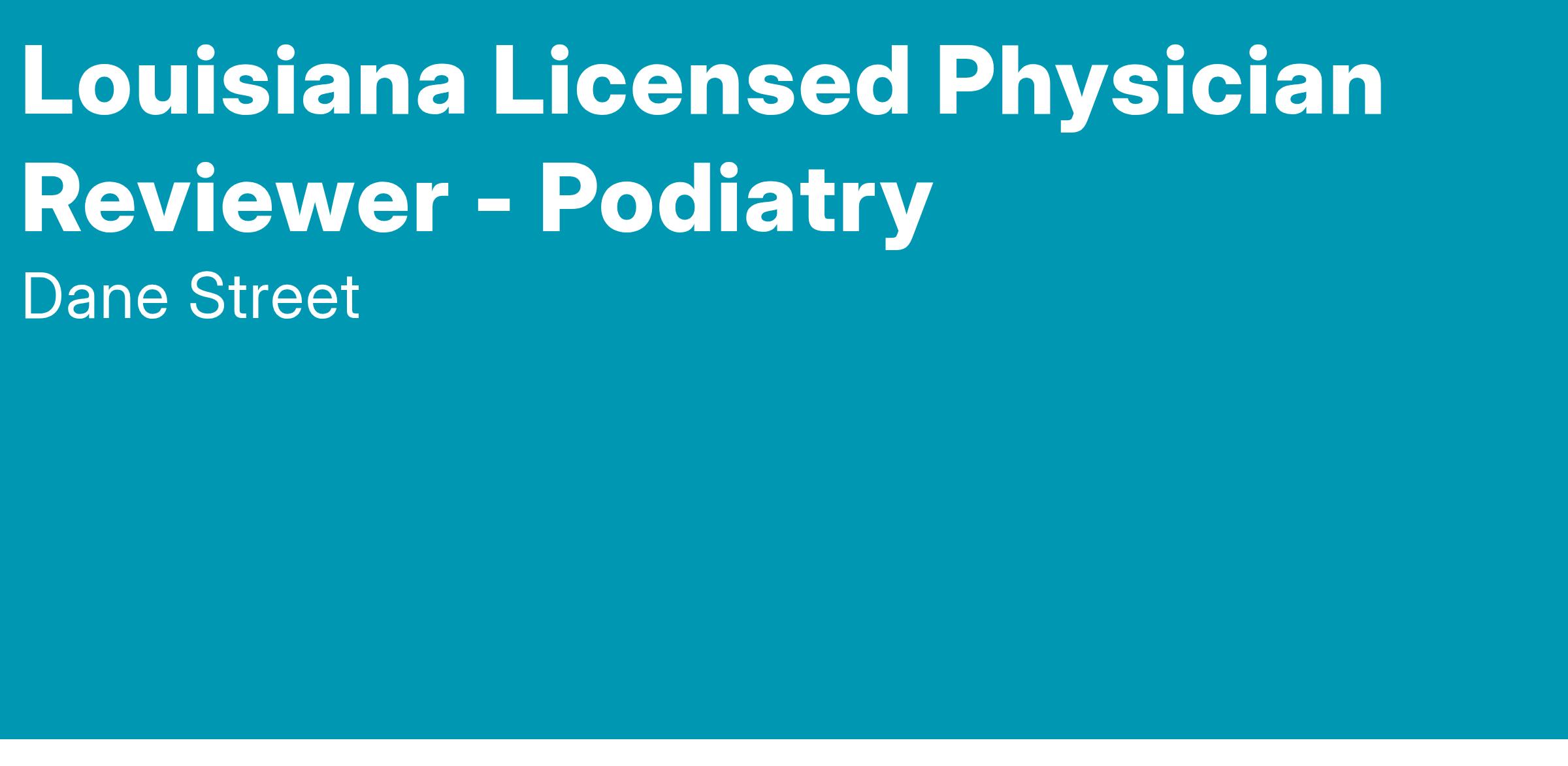 We are looking for the specialties listed below with active Louisiana License to address the medical necessity of treatment requests and, in appeals, the medical necessity of previously denied services.