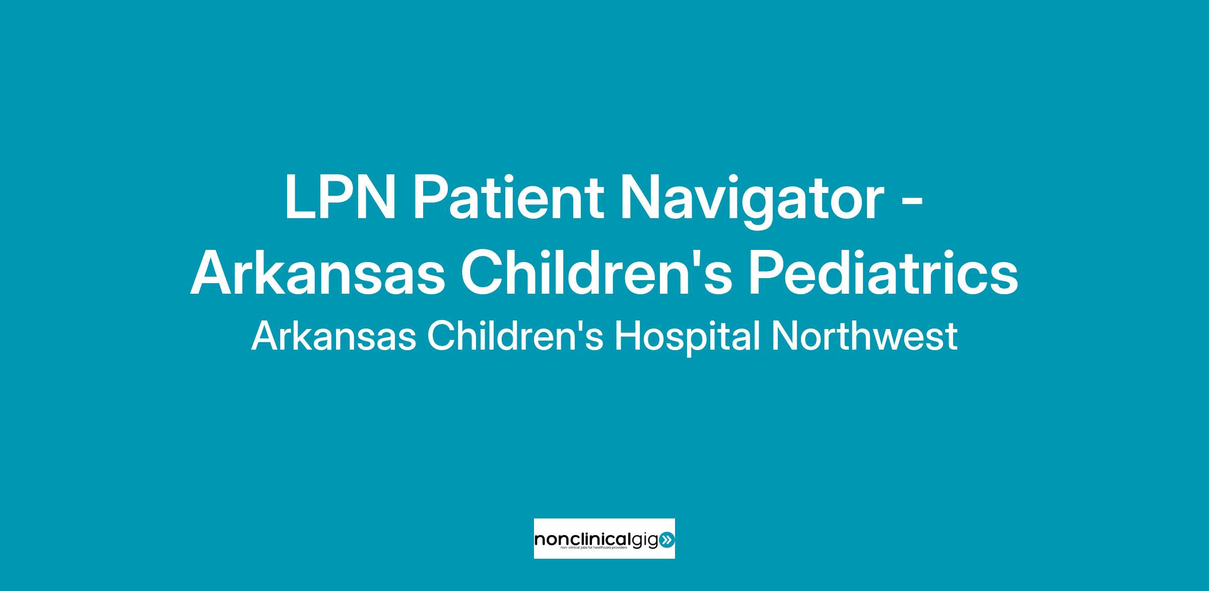 CC015041 Arkansas Children's Pediatrics - LRThe Patient Navigator case manages and coordinates aspects of care for treatment of the Complex Care Program by working with the patient and family to provide education and collaboratively establish a plan of care. Serves as a liaison among physicians, nurses, ancillary departments, patients, families, and office staff to ensure effective utilization of resources and coordination of care.
