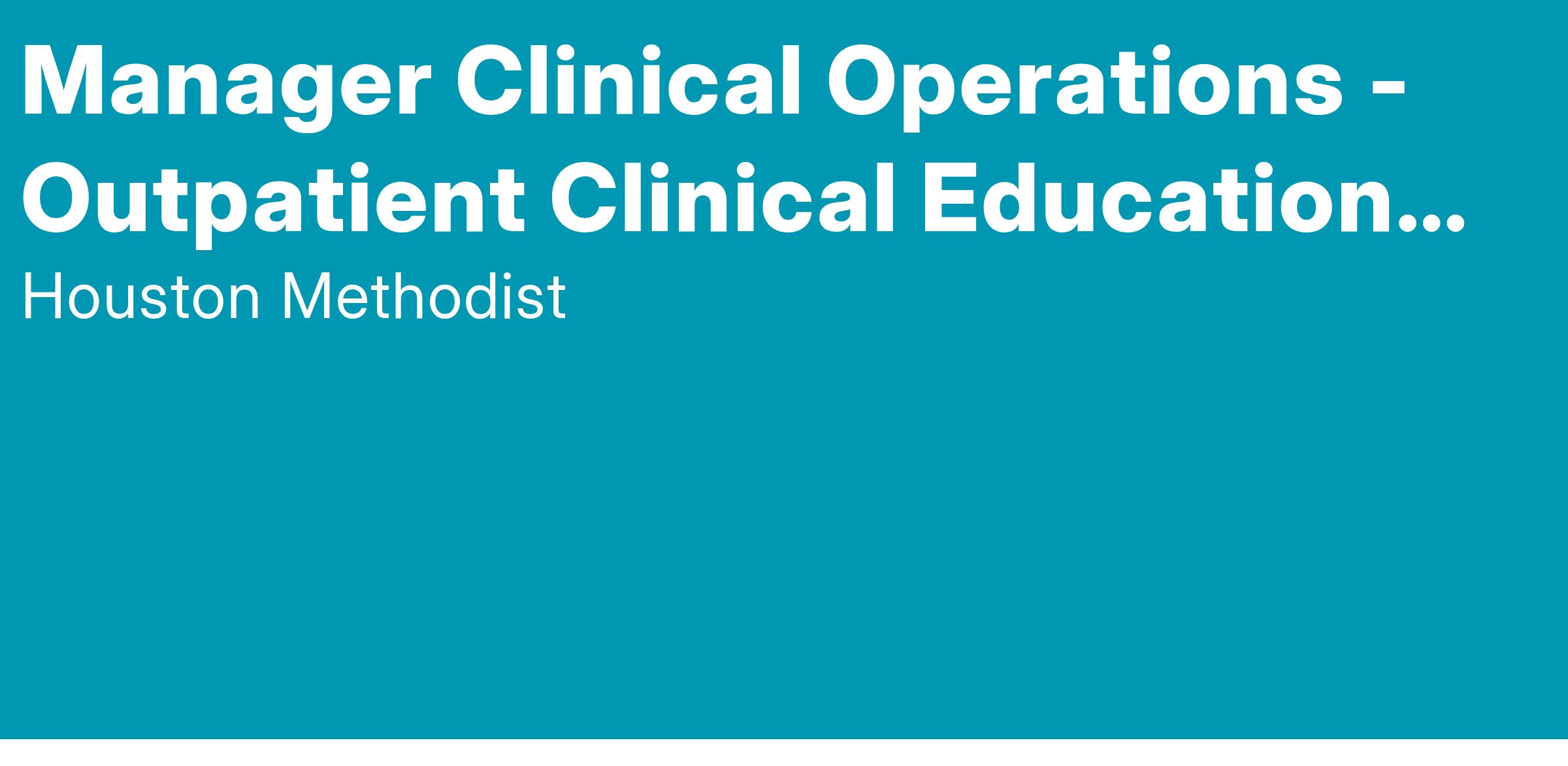 At Houston Methodist, the Manager Clinical Operations position is responsible for providing clinical expertise and serves as a resource to the organization through educational programs, quality improvement projects, and special projects. This position ensures high-quality, cost-effective services and responsive interface among various departments and facilities as it pertains to patient safety, education, nurse triage and clinical quality. The Manager, Clinical Operations position is responsible for maintaining high quality care, as per the standards of all applicable state and federal regulatory agencies. This position will work in collaboration with Clinical, Financial, Operational roles and interdisciplinary workgroups to identify and drive synergistic opportunities across the organization to effectively address patient safety, quality, education and nurse triage needs. The Manager Clinical Operations position works alongside physicians, clinic leadership, and a variety of staff members to provide unparalleled care and customer service to patients while promoting HMH ICARE Values and Service Pride Standards.