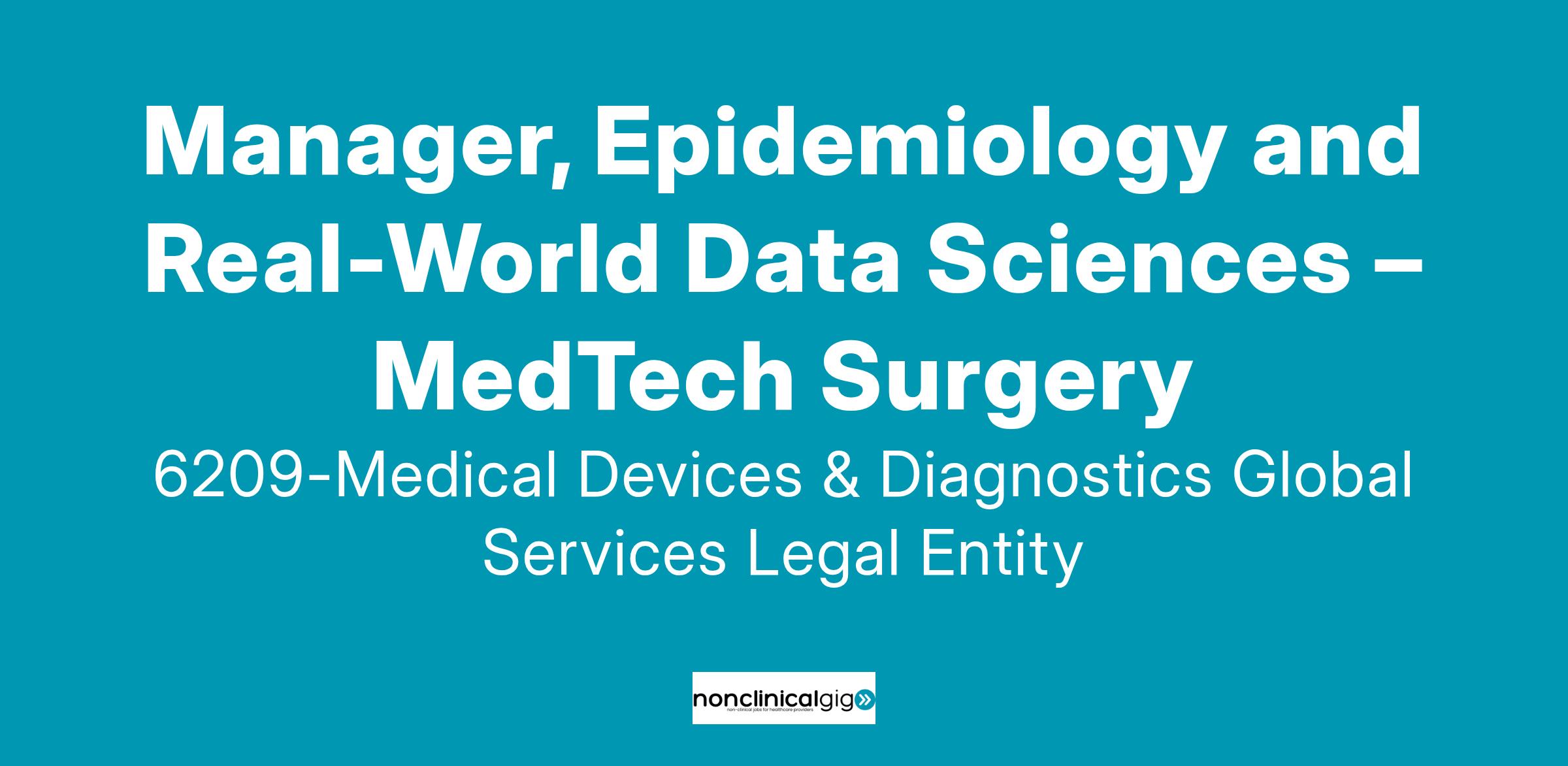 Johnson & Johnson MedTech Surgery is hiring a Manager, Epidemiology and Real-World Data Sciences to join our team and grow their expertise and career in using real-world evidence (RWE). The preferred location for the position is New Brunswick, NJ, Titusville NJ, or Springhouse, PA. Remote work options in the US may be considered on a case-by-case basis and if approved by the Company.