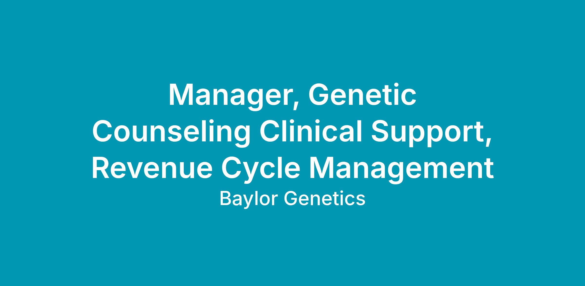 The Manager, Revenue Cycle Management Clinical Support is responsible for establishing and leading a specialized clinical support function focused on prior authorizations and appeals for genetic testing services. This role builds and manages a small team of certified genetic counselors to ensure timely, accurate, and compliant revenue cycle support while improving access to testing and financial outcomes.