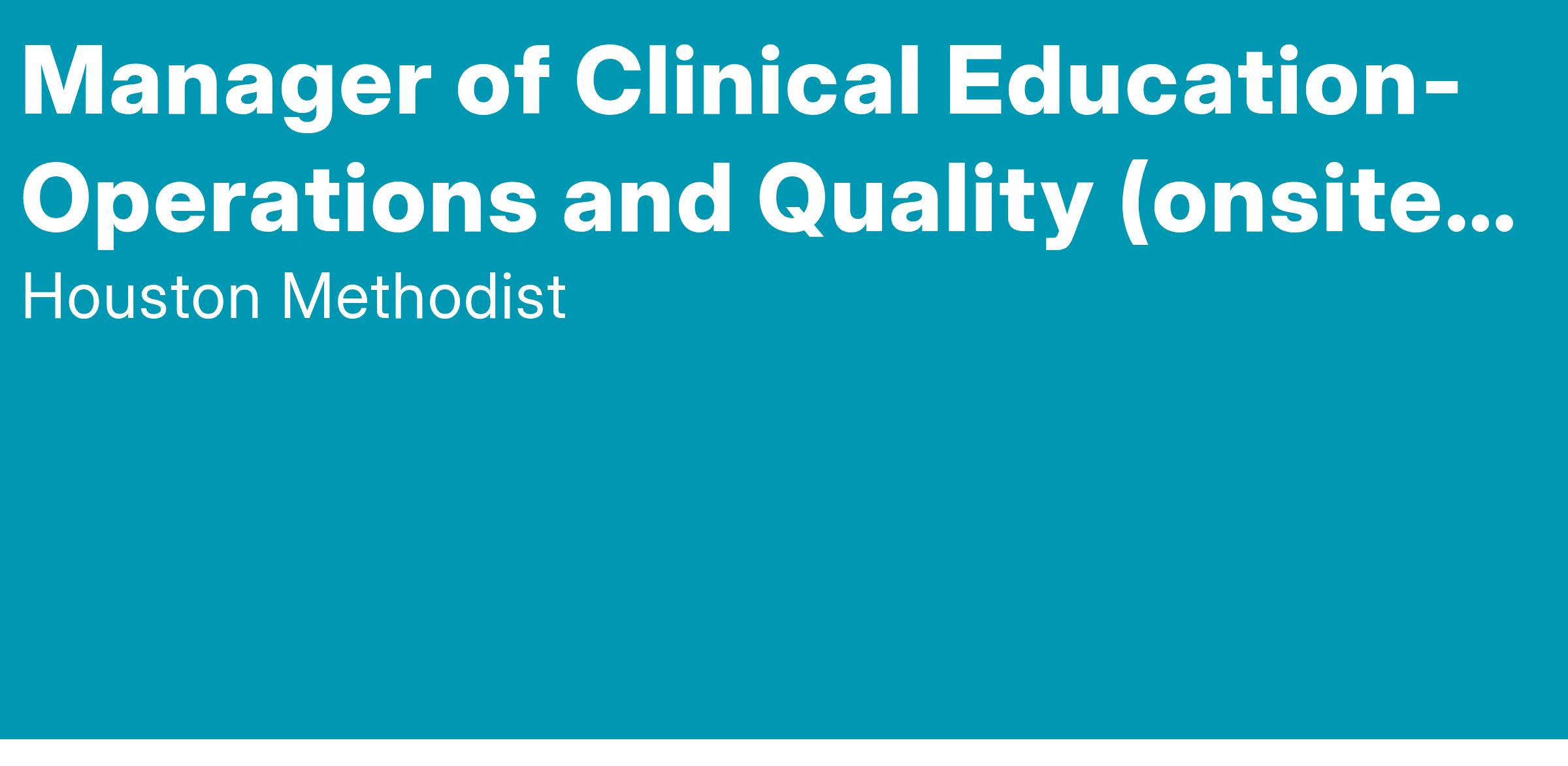 Manager of Clinical Education- Operations and Quality (onsite Medical Center)