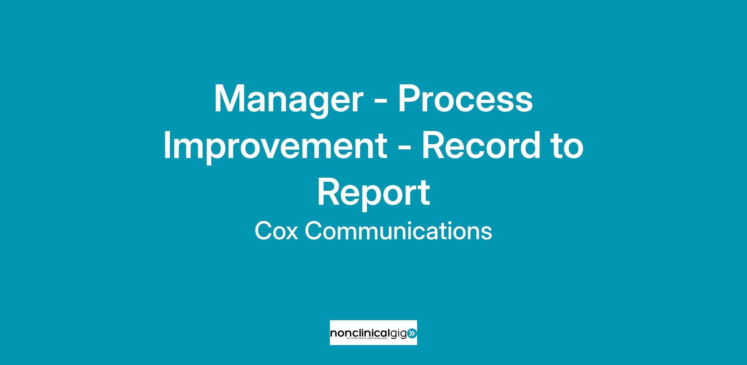 Cox Automotive is hiring a Manager Process Improvement, Record to Report.