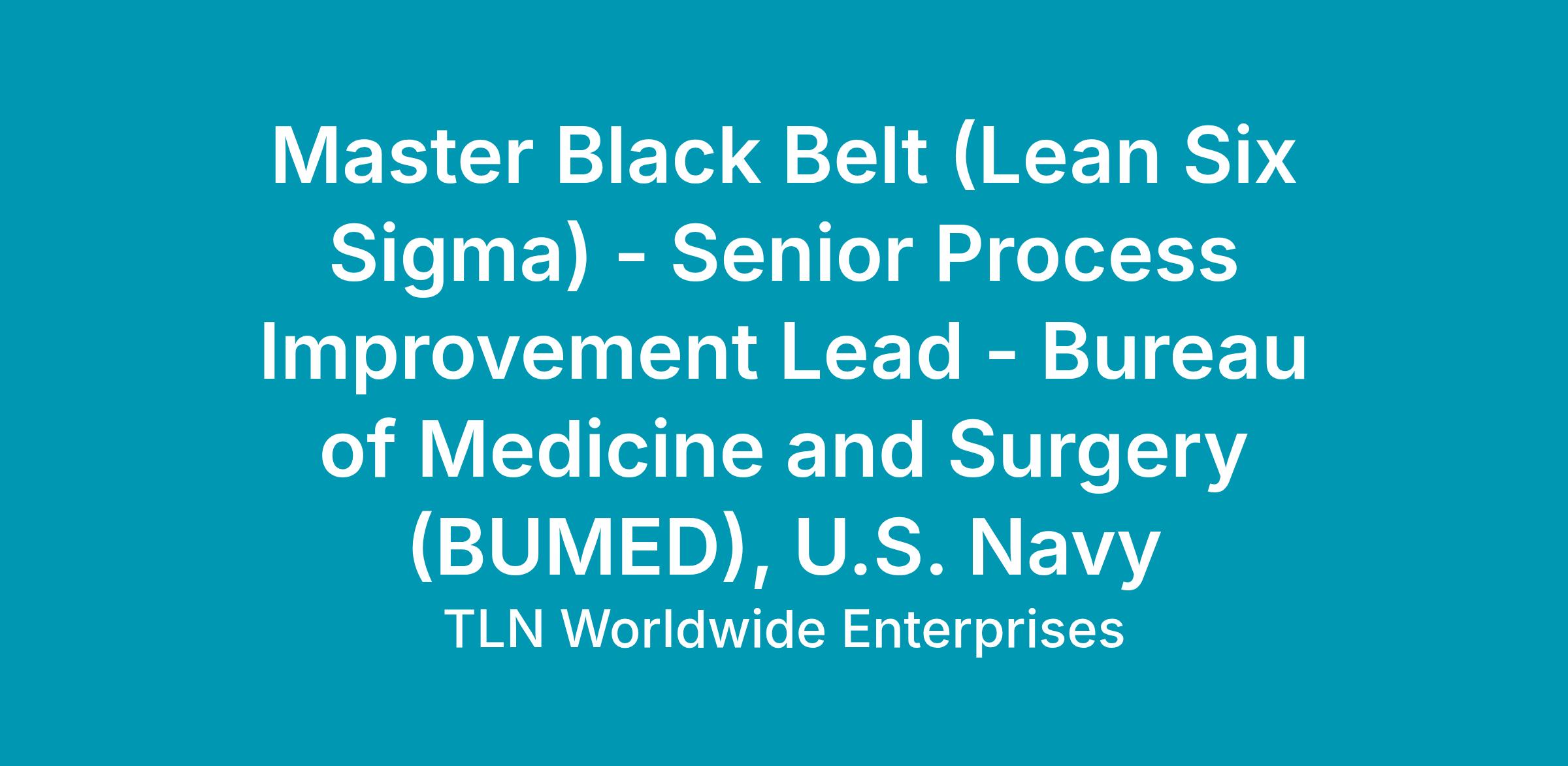 Master Black Belt (Lean Six Sigma) - Senior Process Improvement Lead - Bureau of Medicine and Surgery (BUMED), U.S. Navy