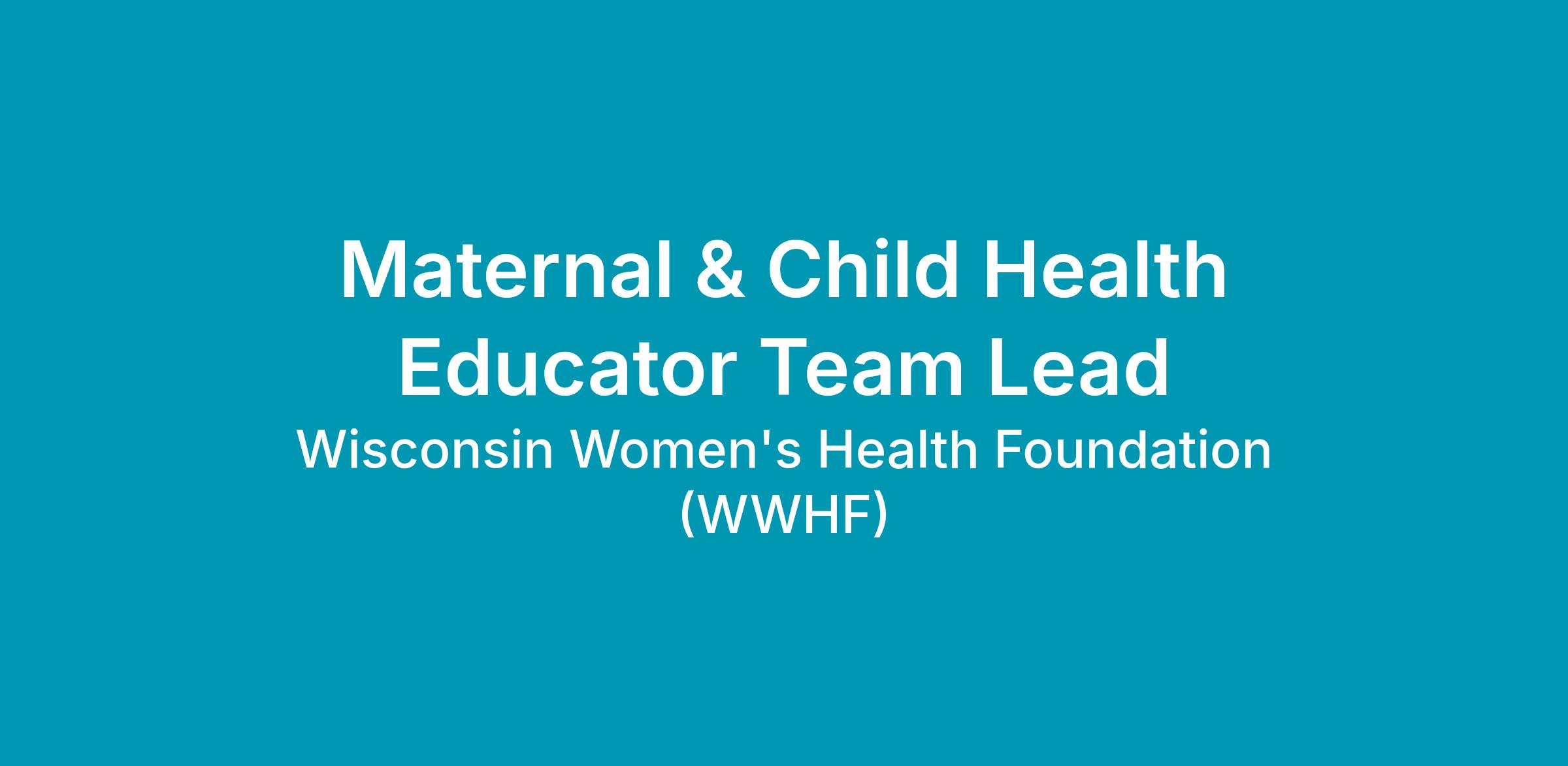 The Wisconsin Women’s Health Foundation (WWHF) is a mid-size nonprofit with over a 25-year history of providing high-quality women’s health education and outreach programming statewide. The WWHF is seeking a professional to join our First Breath team as a Maternal & Child Health Educator Team Lead. First Breath is a statewide program that helps people make positive changes to their tobacco, alcohol, and other substance use during pregnancy and beyond. The Maternal & Child Health Educator Team Lead will provide evidence-based tobacco treatment, substance use and mental health early intervention services to pregnant and postpartum individuals residing in Wisconsin.