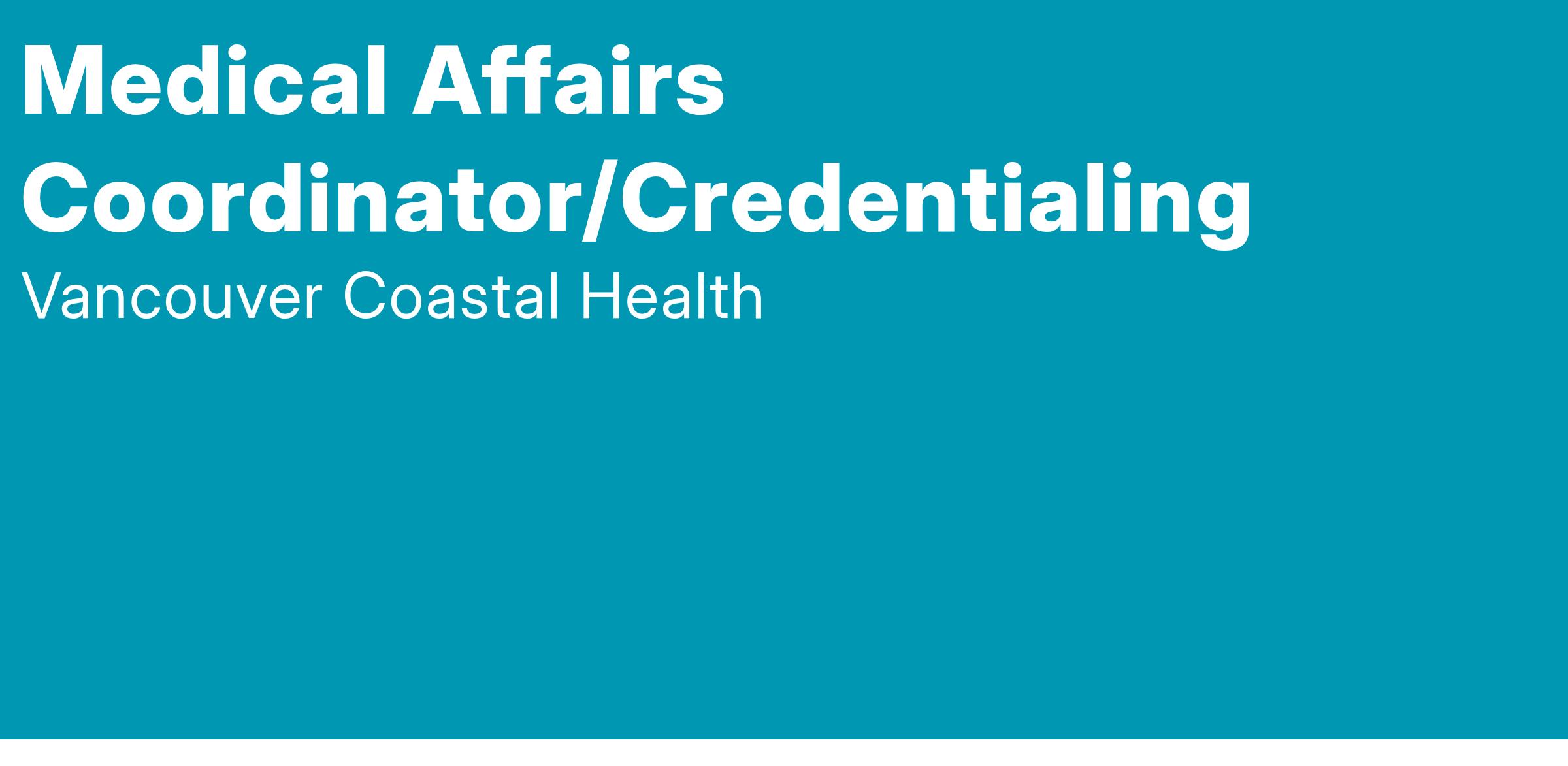 As a Medical Affairs Coordinator/Credentialing with Vancouver Coastal Health you will: