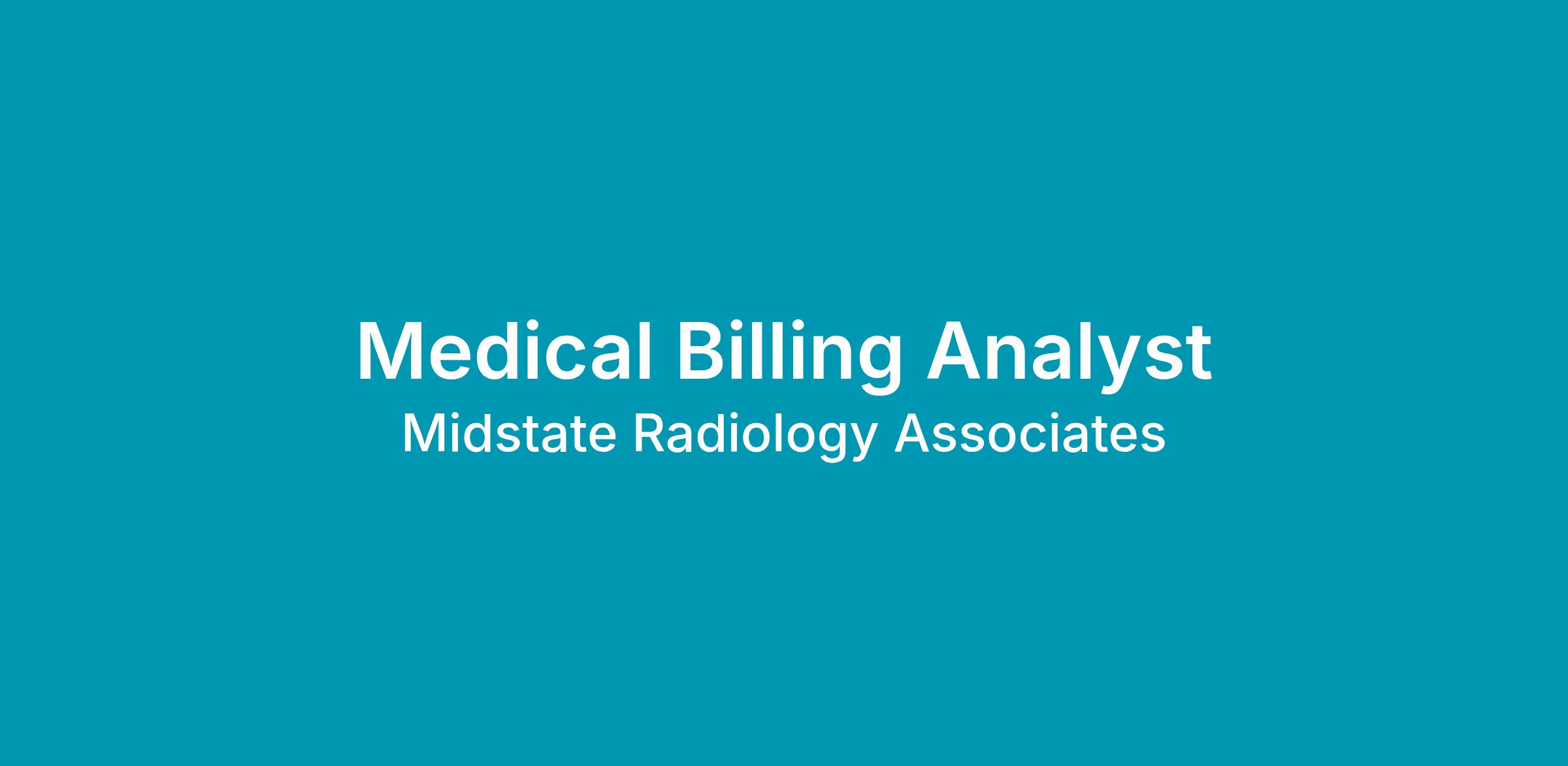 Join Midstate Radiology Associates (MRA) as a Full Time Medical Billing Analyst in Wallingford, CT.