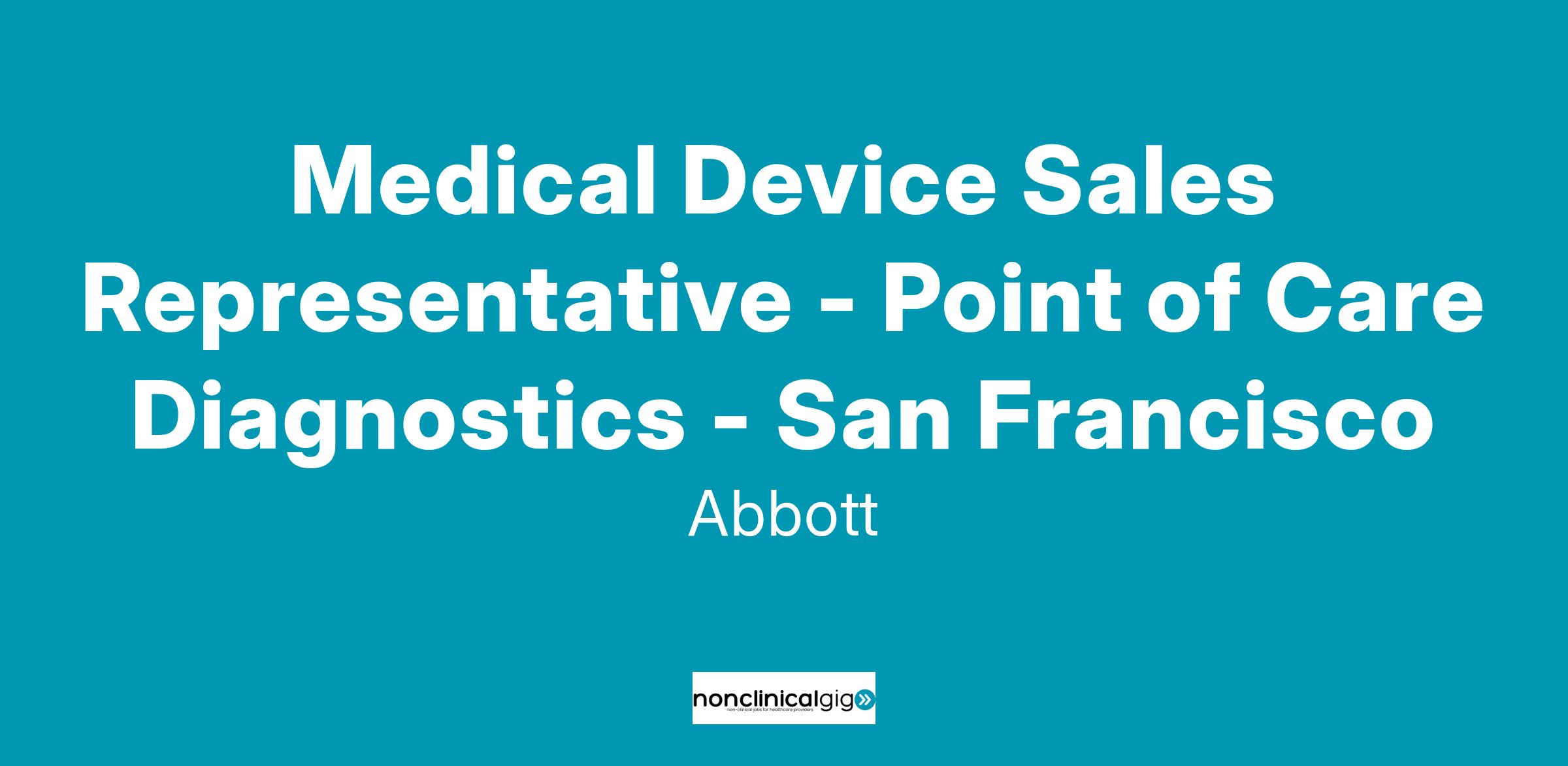 We are hiring a Point of Care Solutions Specialist in our Abbott Point of Care (APOC) Division selling to hospitals in San Francisco, CA. The Point of Care Solution Specialist works independently within an assigned territory leading commercial execution to increase market share and drive sustainable growth. Working in a collaborative environment, the Sales Specialist will partner with internal support team members to identify opportunities and create strategies that move sales cycles forward. The position reports to the District Manager and requires up to 50% travel to provide customer-focused service and effectively support business goals.