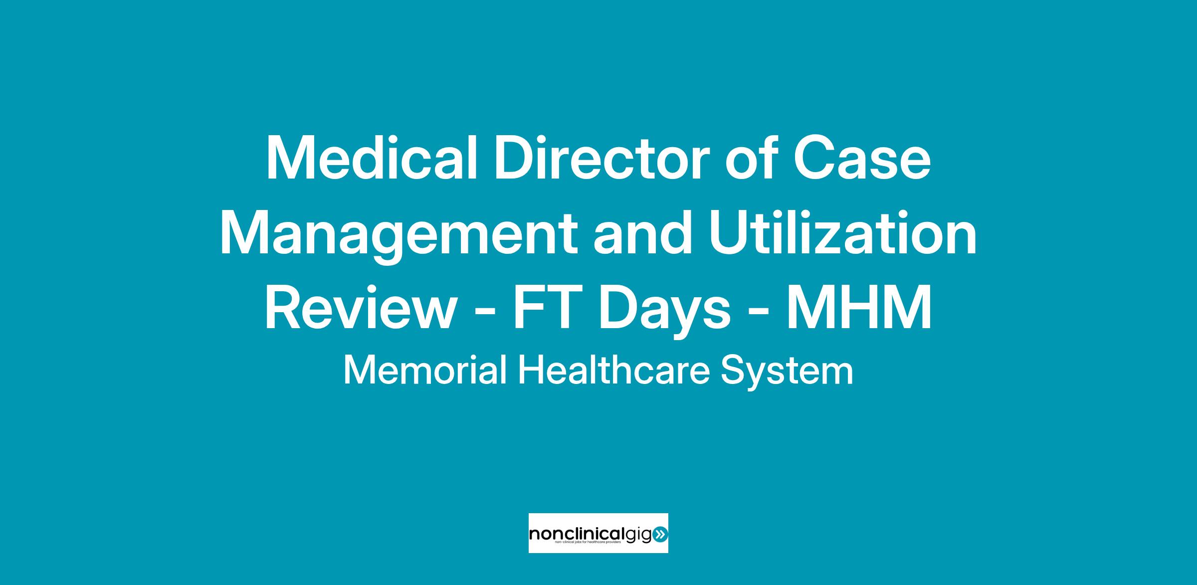 The Medical Director of Case Management and Utilization Review leads the hospital specific execution of the Case Management (CM) and Utilization Management (UR) and related activities. The Medical Director functions as the primary physician advisor for the hospital and supervises other Physician Advisors for that hospital. As an active member of the UR Committee and in collaboration with it, identifies opportunities to improve utilization of hospital resources and the quality of patient care. Assists the Case Management staff in resolving patient care issues for referred cases, provides physician education, and assists the hospital and medical staff in developing and promoting resource management goals and objectives. This position reports to the Senior Medical Director of Case Management and Utilization Management.Responsibilities: