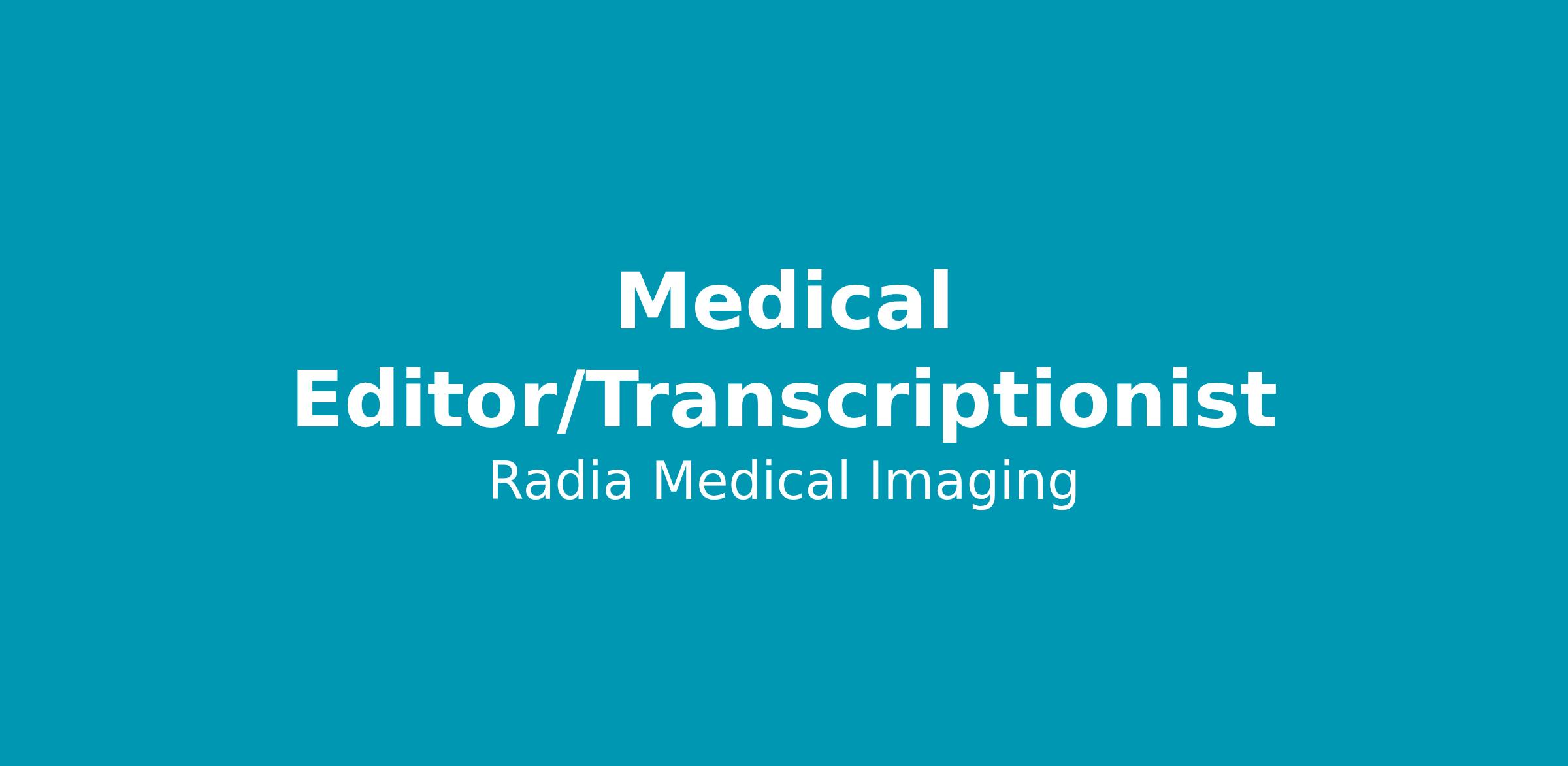 Radia has an exciting opportunity for a Medical Editor/Transcriptionist to join our dynamic team! This is a great opportunity for those that thrive in a fast-paced environment and are eager to learn about radiology! Here at Radia, patients are our number one priority, and we are committed to hiring staff who deliver excellence: in patient care, in customer service, in technology support and in operations. Radia is a place where you can make a real difference for our patients and for yourself.
