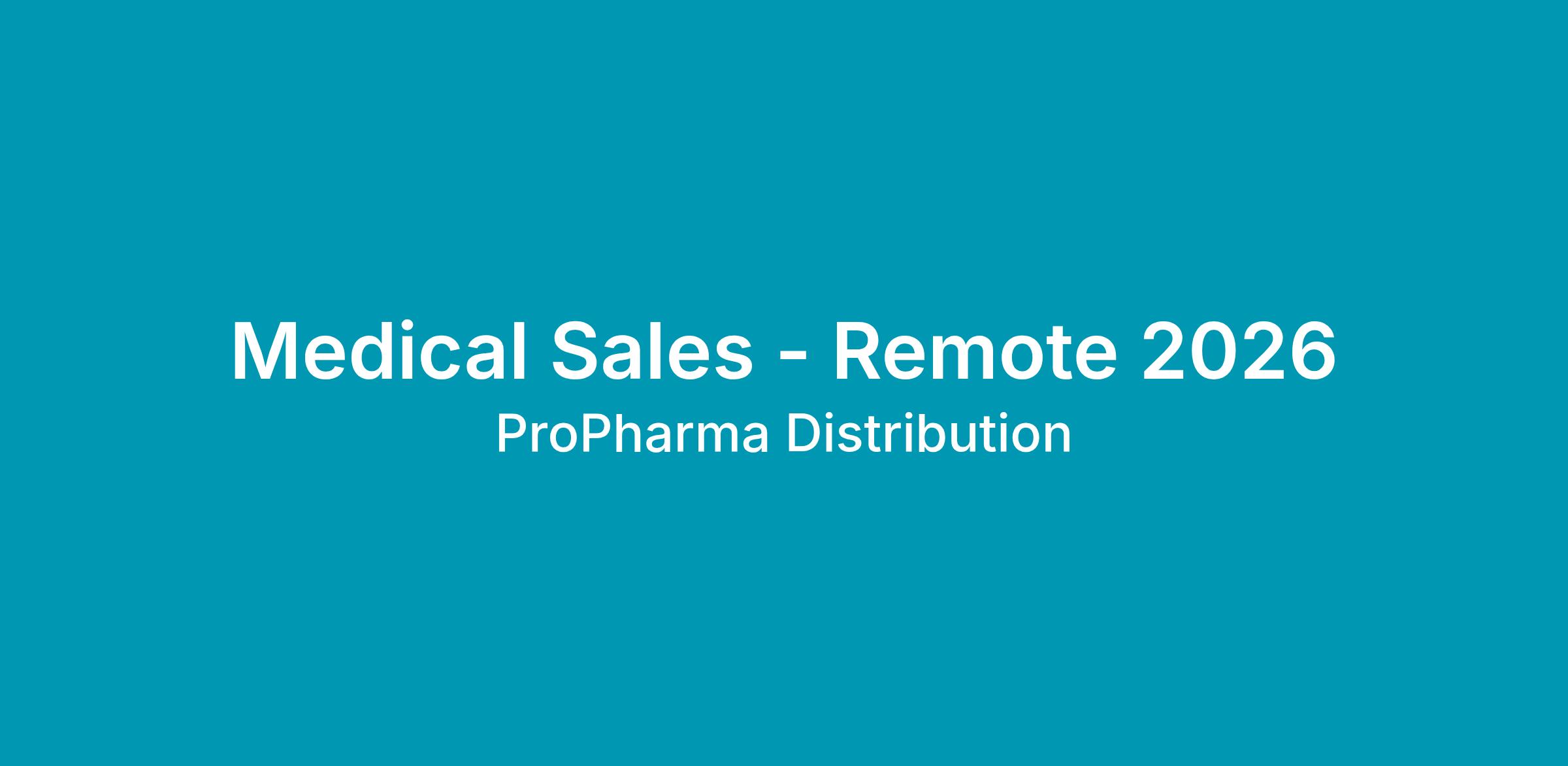 Medical Sales - Remote 2026
