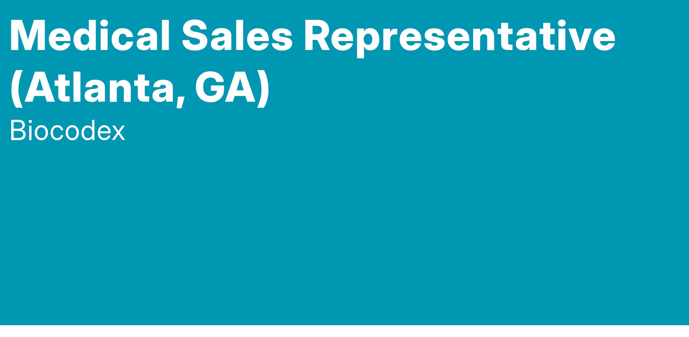 In order to accompany the growth of Biocodex, we are looking for a: Medical Sales Representative (Atlanta, GA). This position is REMOTE but the candidate must reside within the territory.