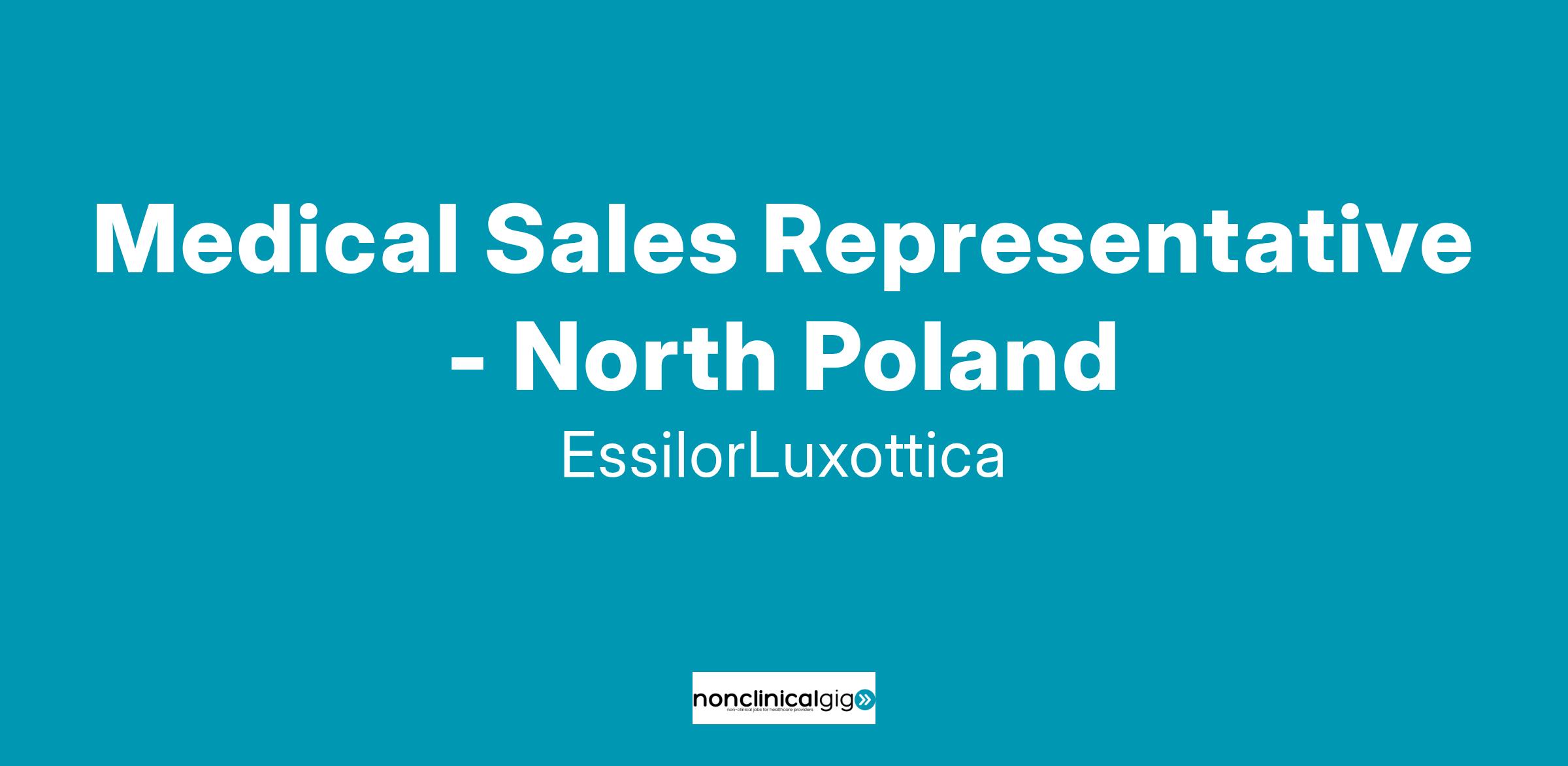 - As Sales Medical Representative, you will be EssilorLuxottica’s medical representative towards Ophthalmologists, Hospitals, Private clinics and targeted dispensing opticians and Optometrists in North Poland. You will be field-based and you will cover the following regions: Wielkopolskie, Kujawsko-Pomorskie, Lubuskie, Zachodniopomorskie, Pomorskie, Warmińsko-Mazurskie.