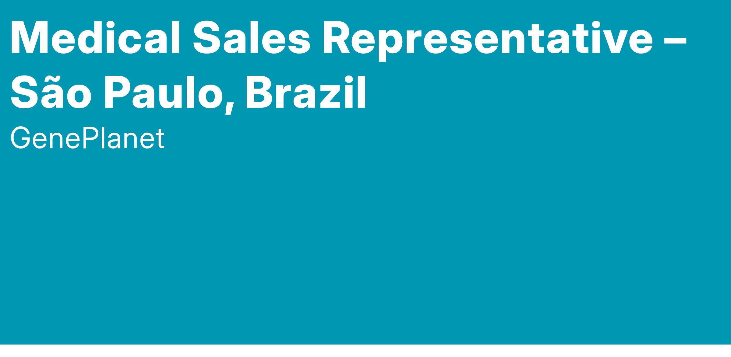 GenePlanet, a global leader in the field of preventive genetic tests, specializing in NIPT, cancer screening, and lifestyle DNA tests, is looking for an ambitious Medical Sales Representative to develop and grow our sales partners (clinics, doctors, medical laboratories, etc.) network and drive company's business in São Paulo, Brazil.