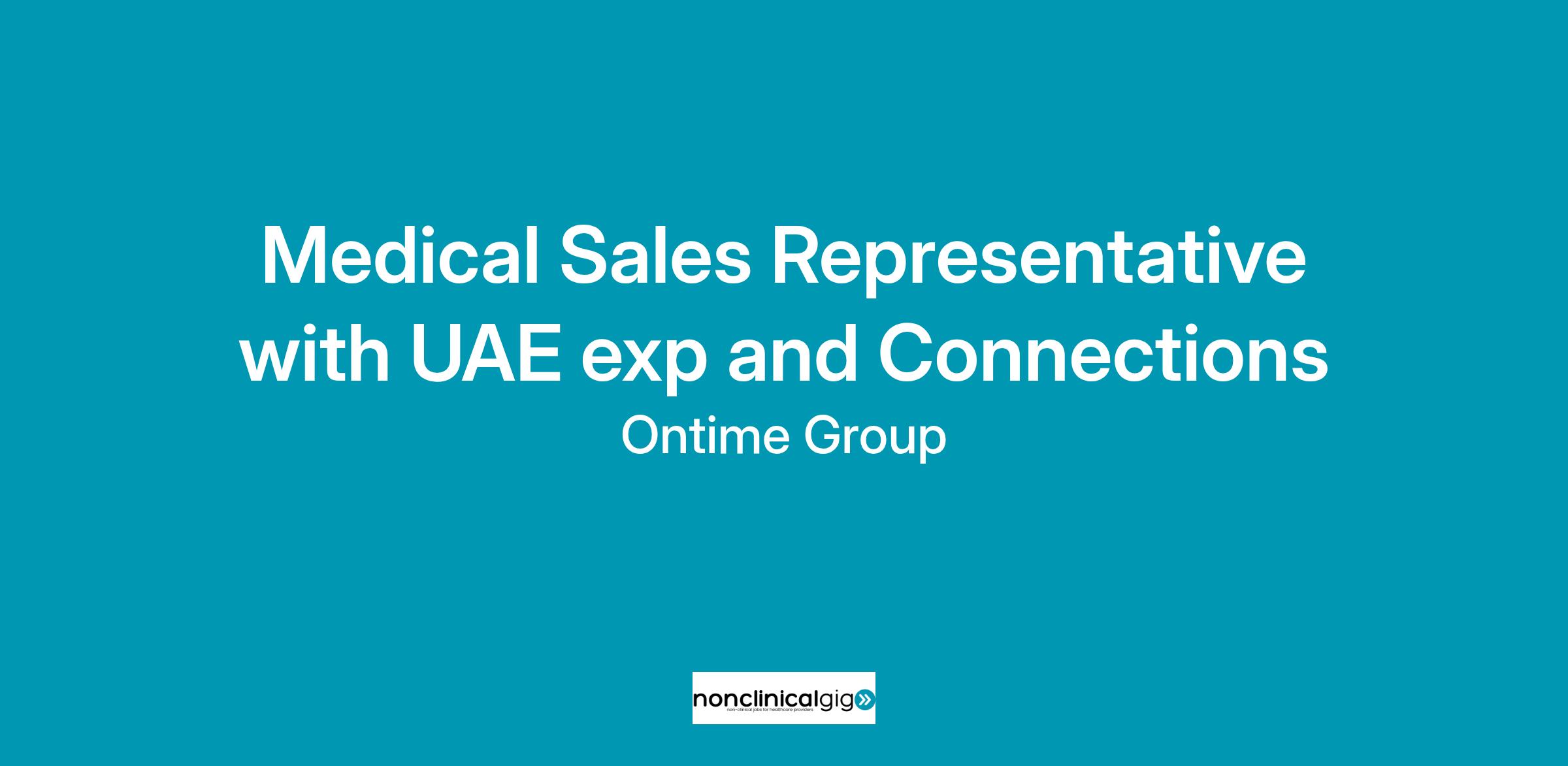 DescriptionOnTime Group is on the lookout for a skilled Medical Sales Representative with experience in the UAE healthcare market and established connections within the industry. This role is pivotal in driving sales of our healthcare products and services, leveraging your existing relationships and deep understanding of the local market to meet and exceed sales targets while providing excellent support to our clients.